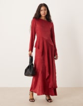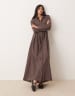 ASOS DESIGN maxi shirt dress with cinched waist detail in chocolate and navy gingham