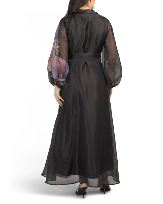 DALIA MACPHEE Balloon Sleeve Floral Print And Applique Dress