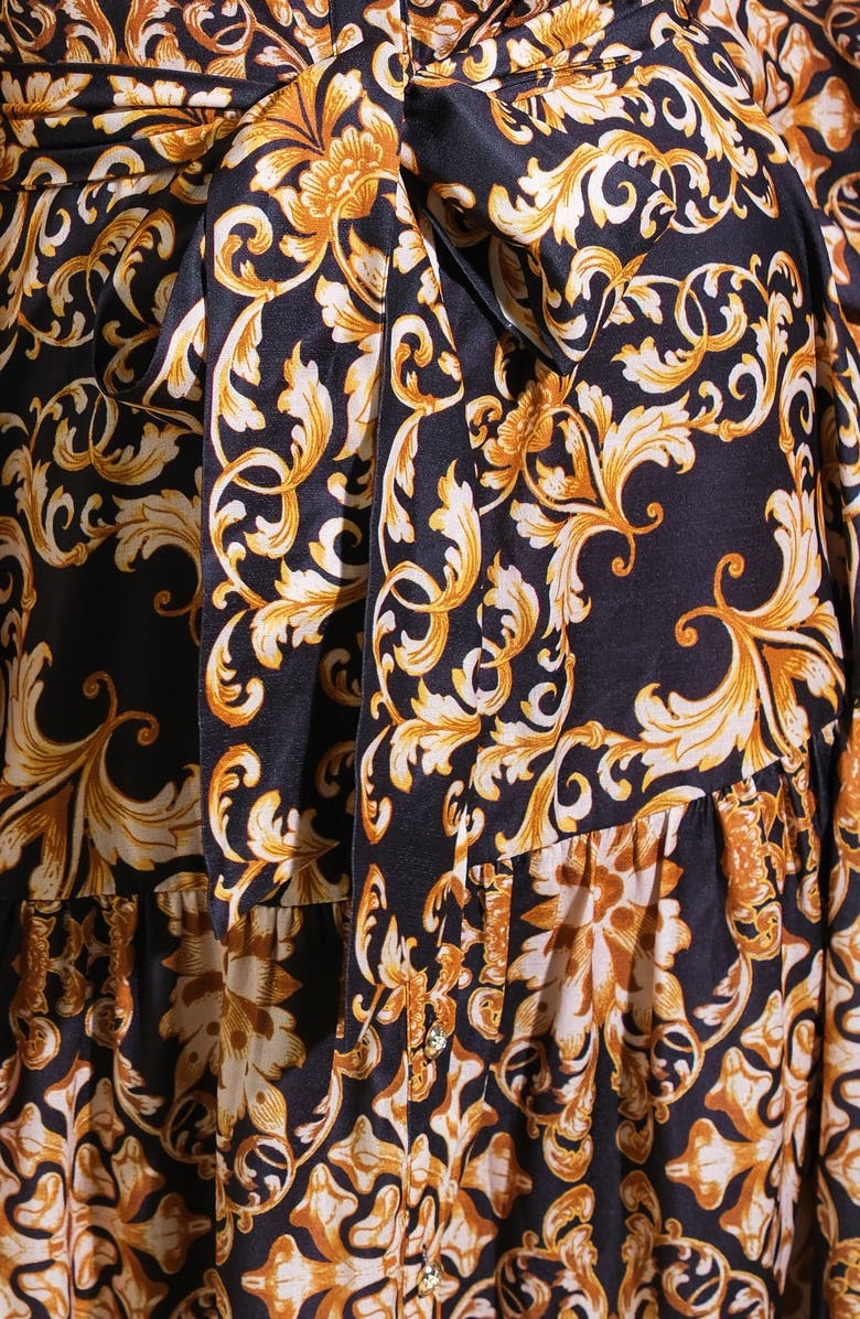 FLYING TOMATO Print Long Sleeve Tiered Midi Shirtdress