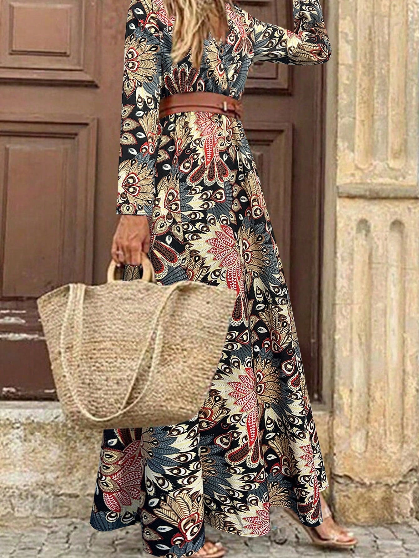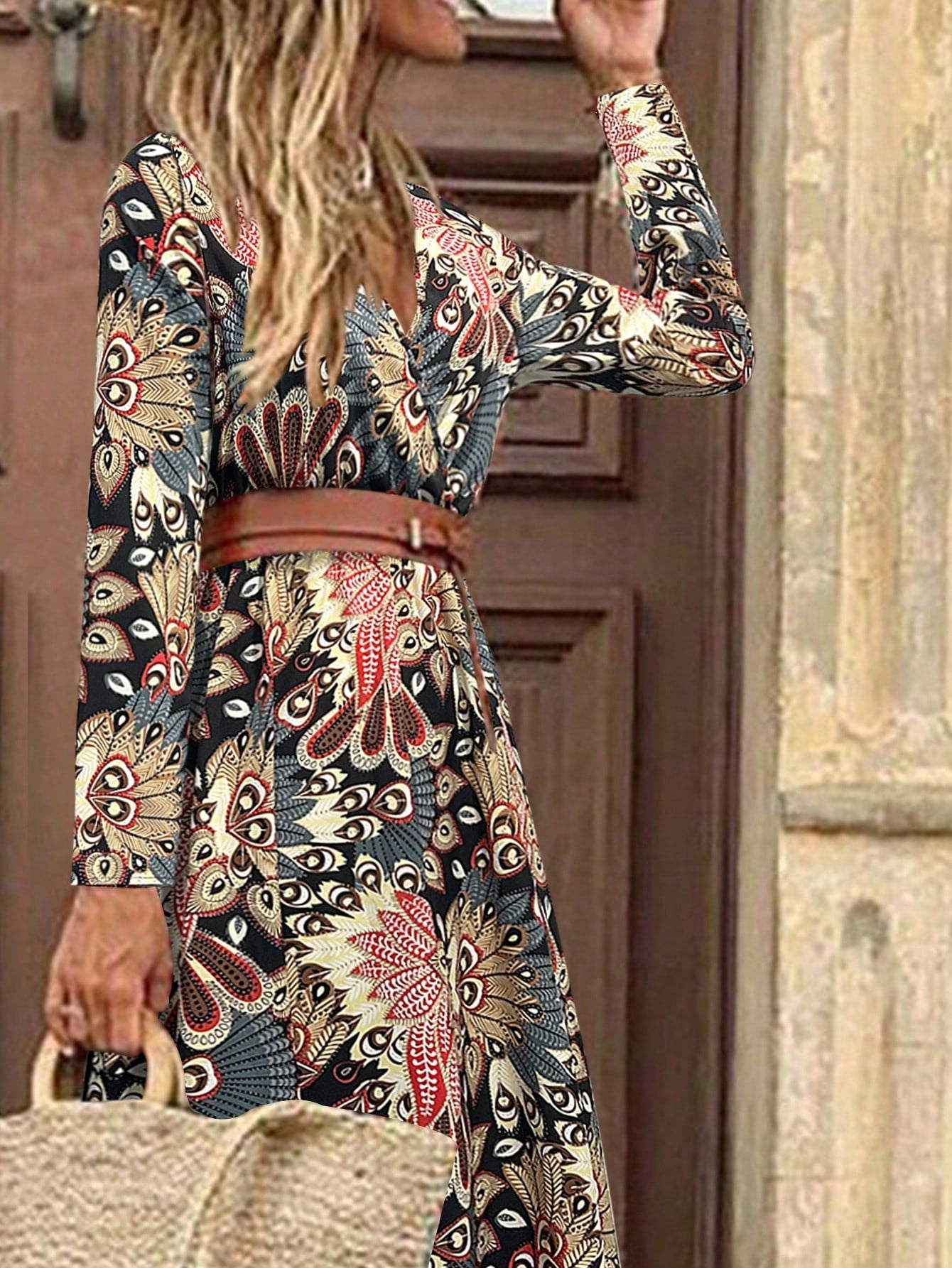 9 colors! SHEIN LUNE Full Print Long Sleeve Dress
