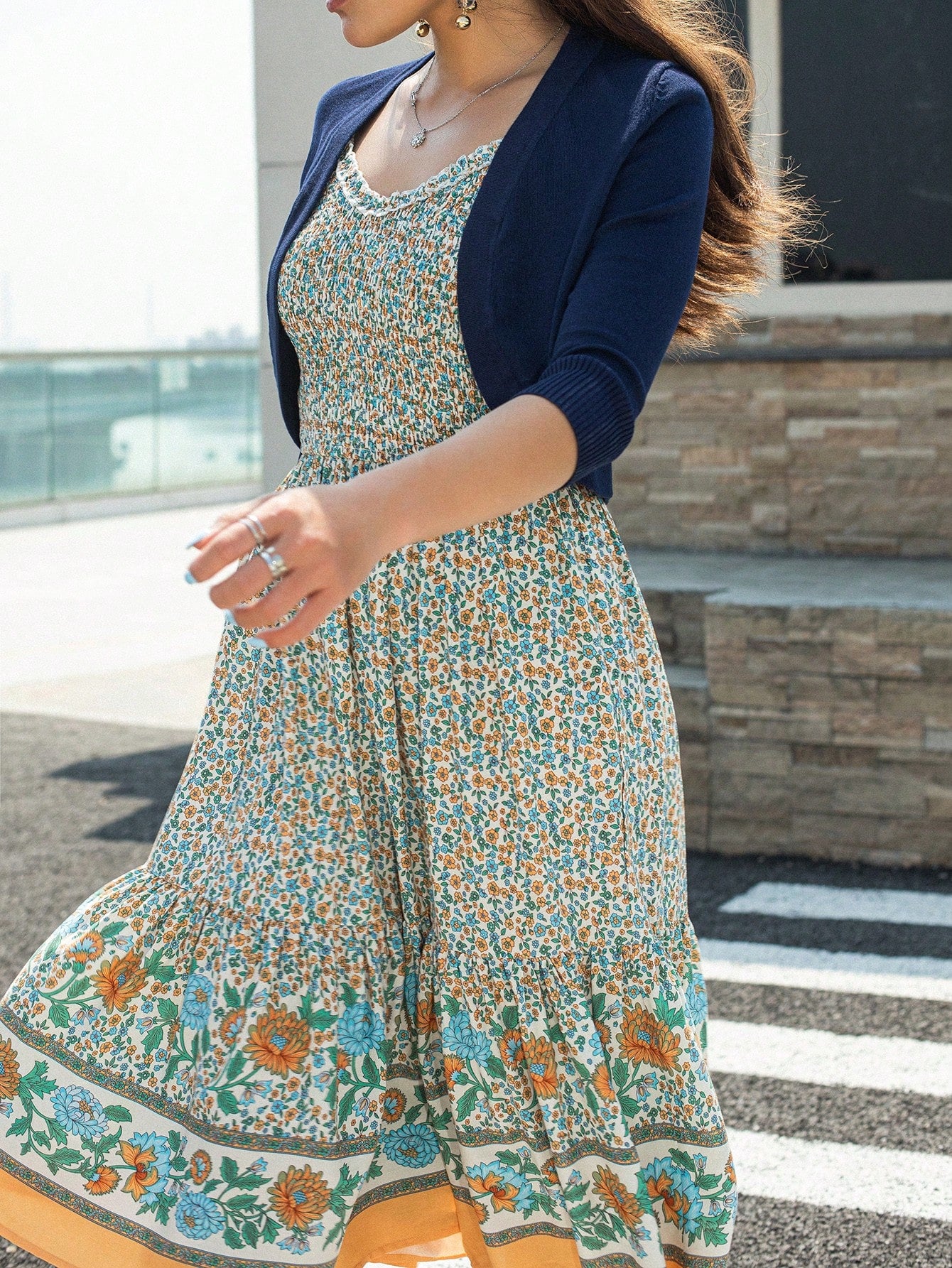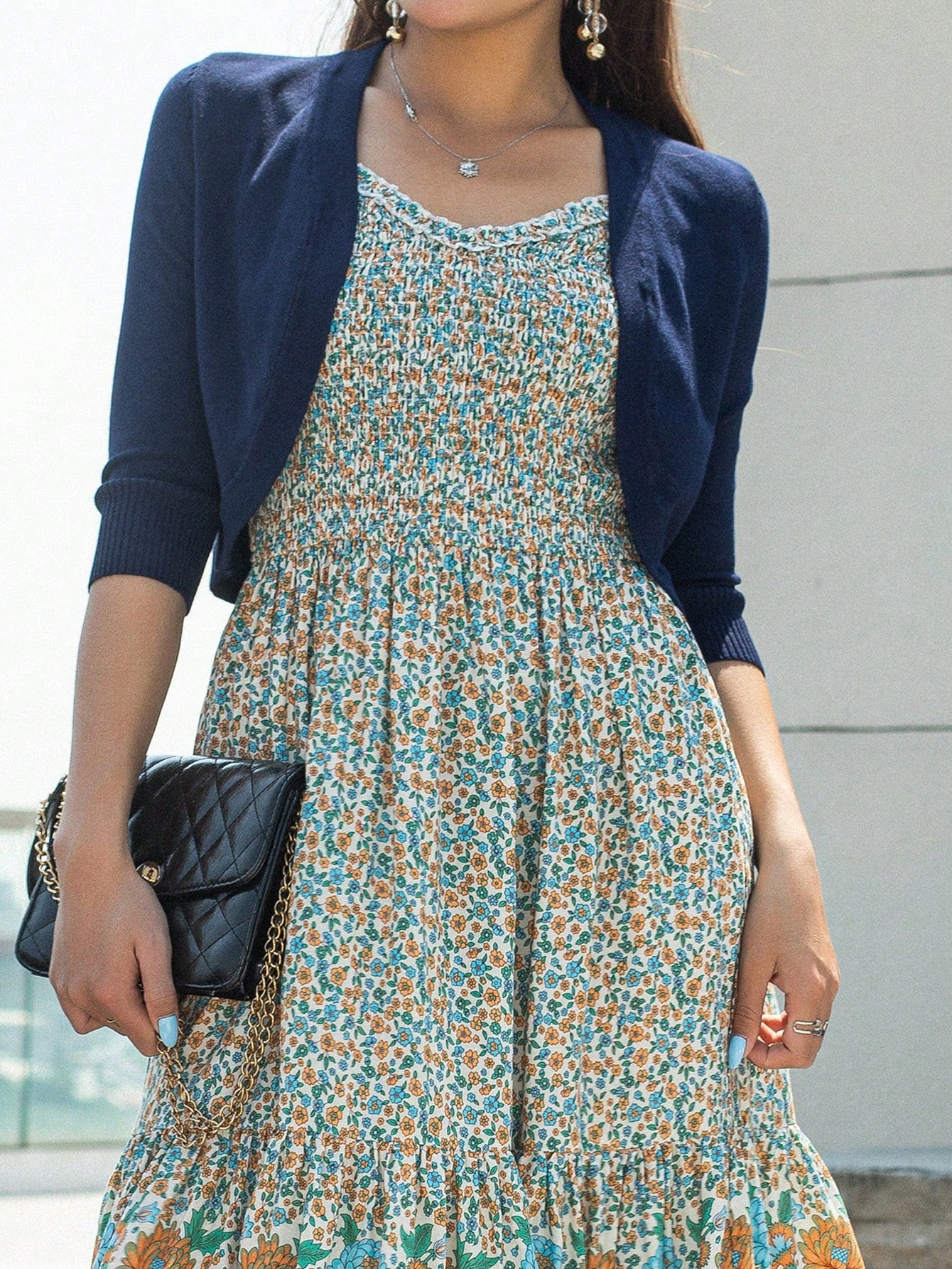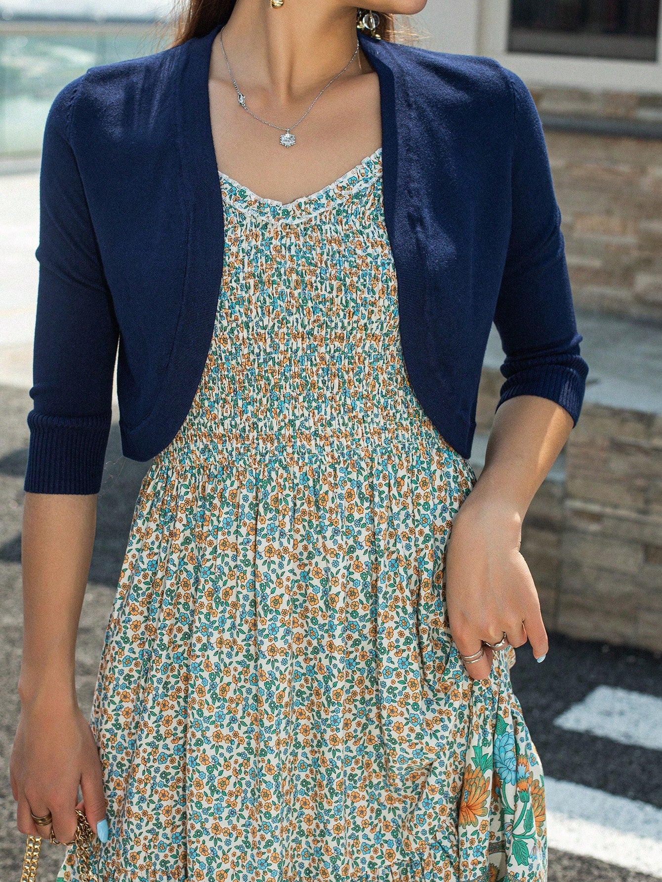 AAmilife 3/4 Sleeve Moon Shaped Open Front Cardigan
