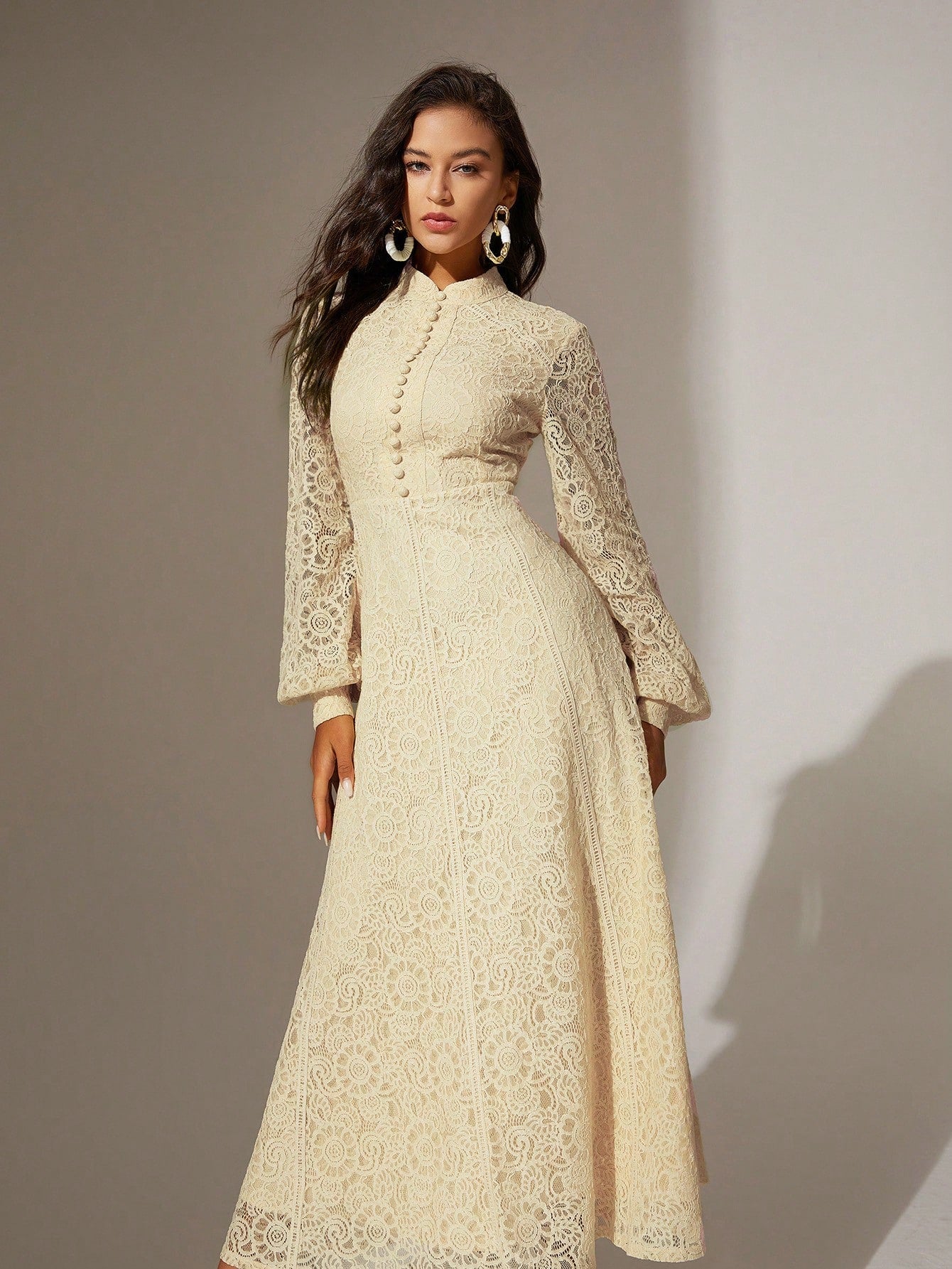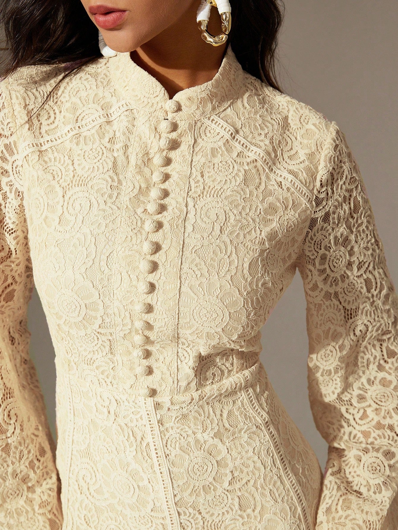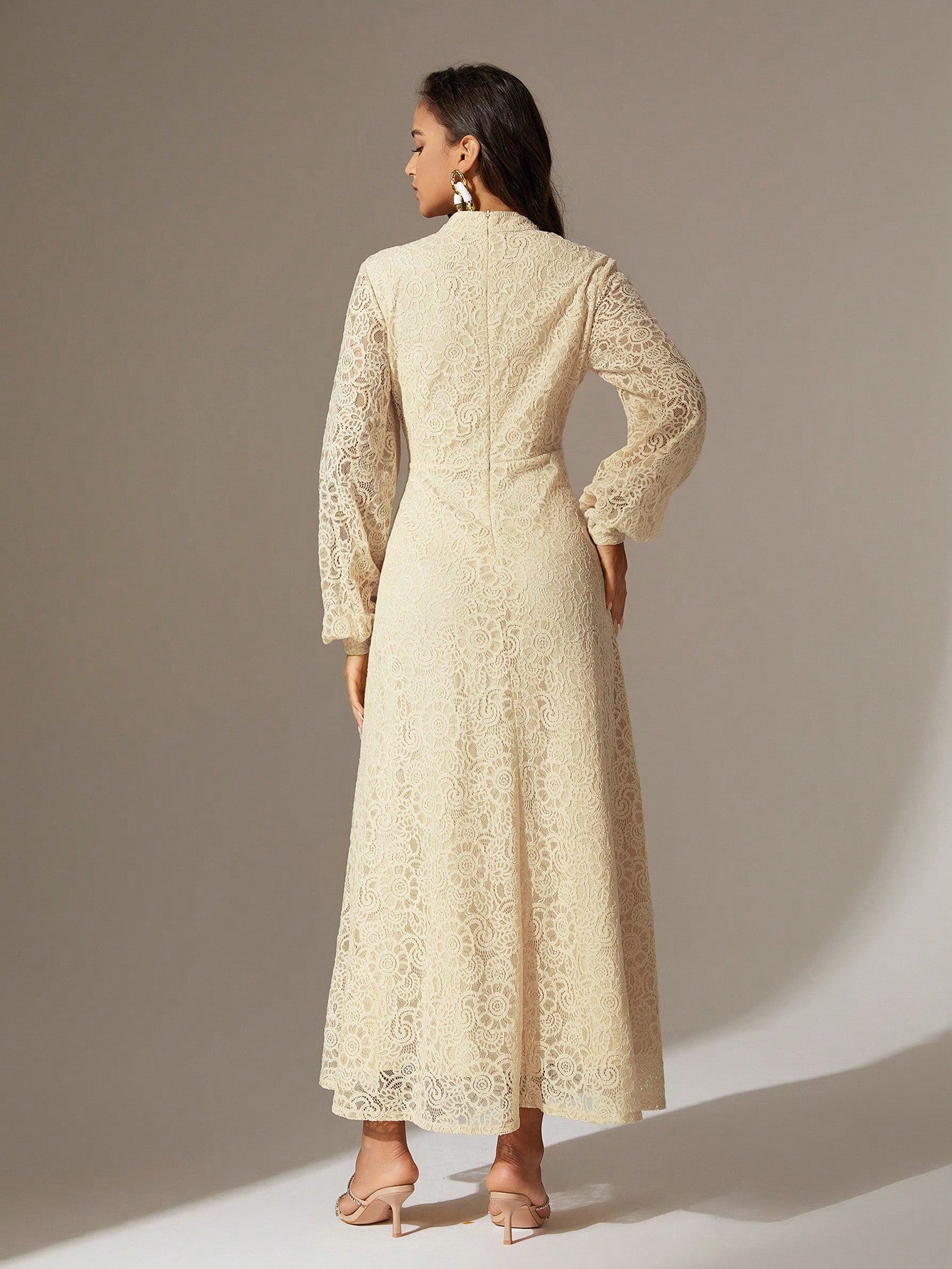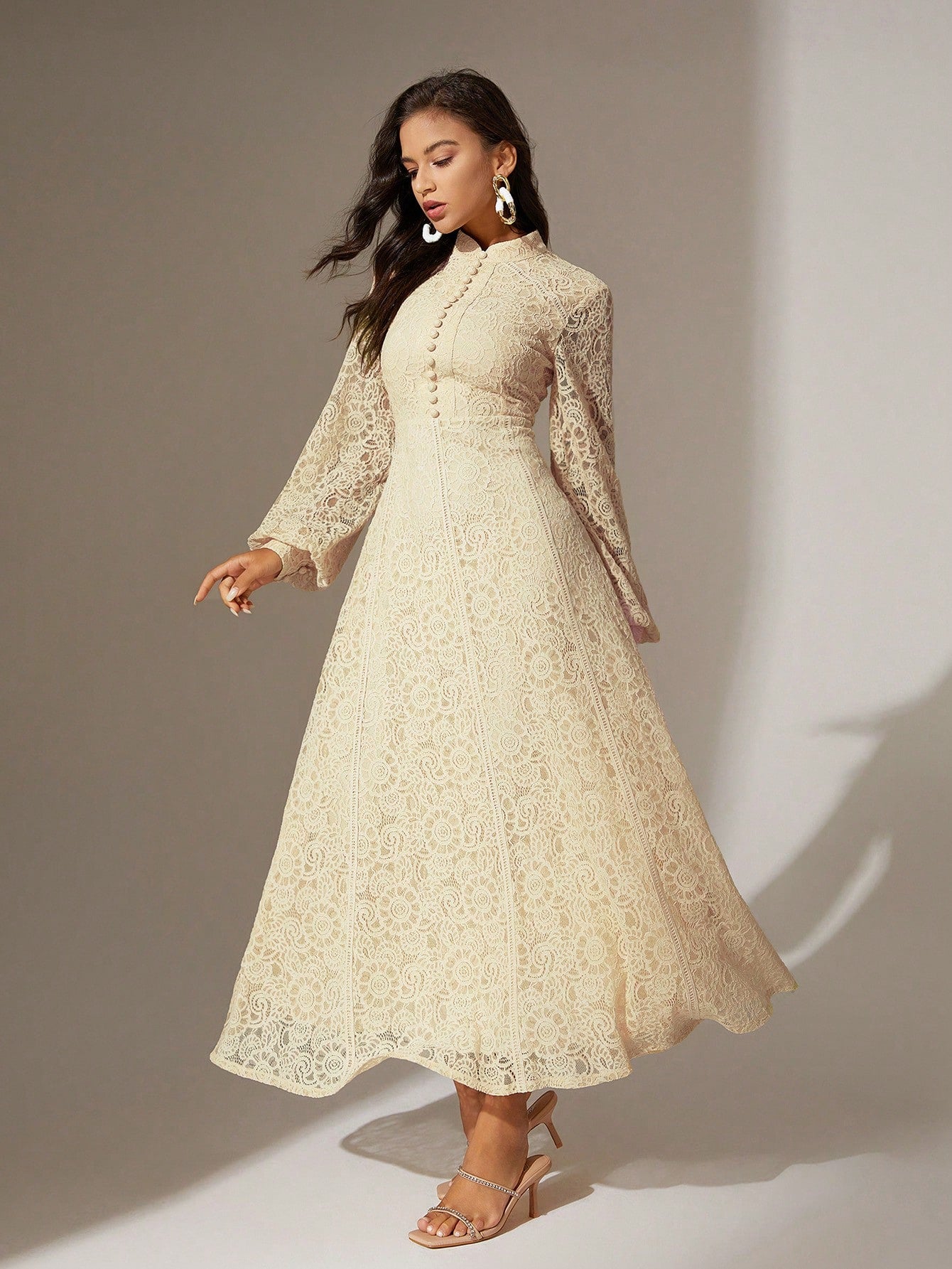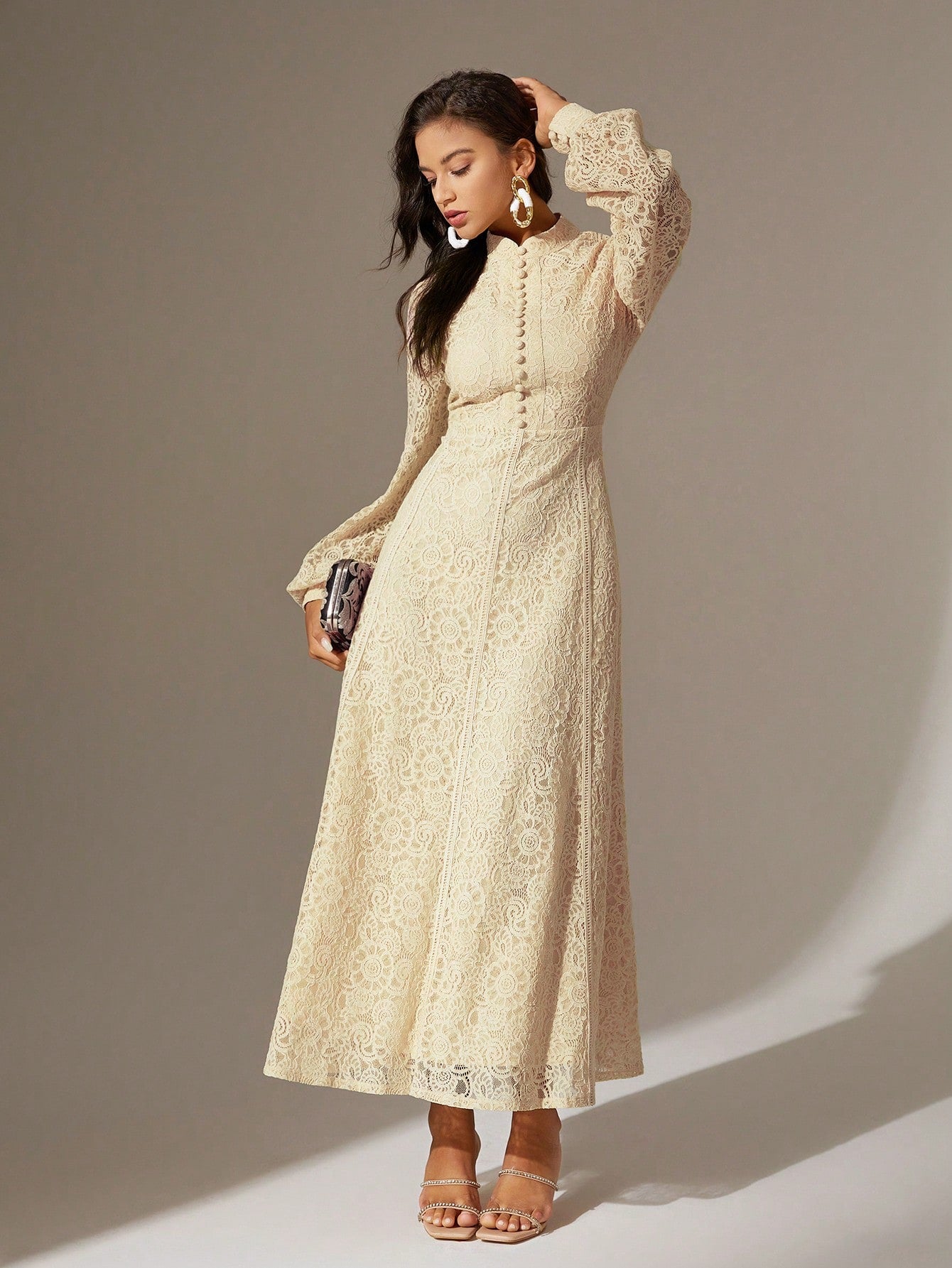 Anewsta Women's Long Sleeve Lace Solid Color Dress