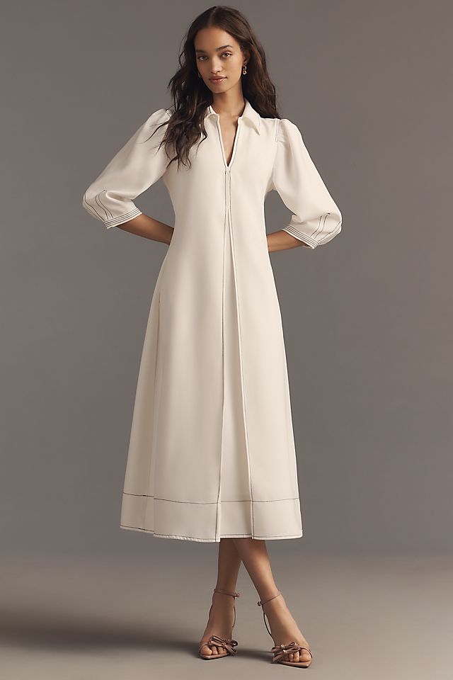 Anthropologie English Factory Long-Sleeve Collared Center-Pleat A-Line Midi Dress
