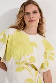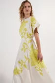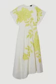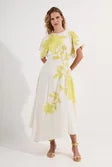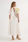 Applique And Beaded Linen Woven Midi Dress With Tie Back Detail
