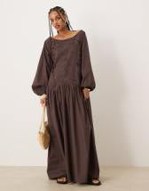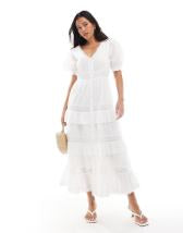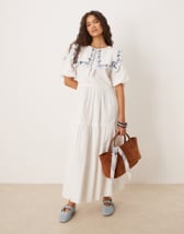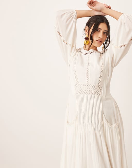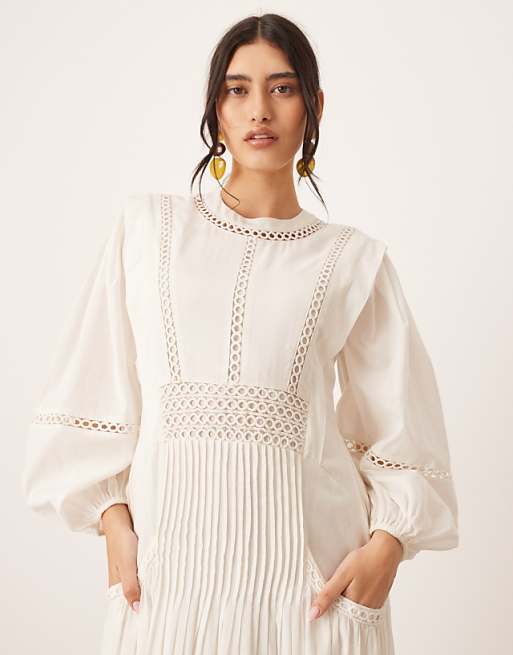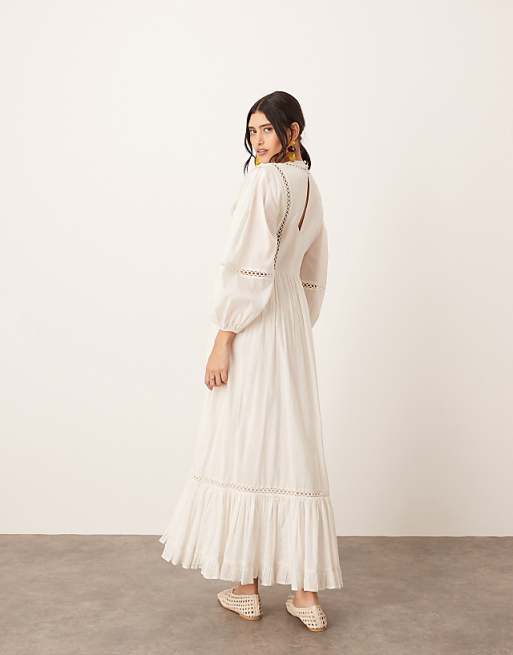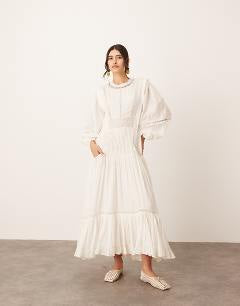 ARRANGE cotton voile maxi dress with lace trim in ivory
