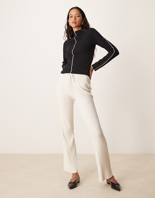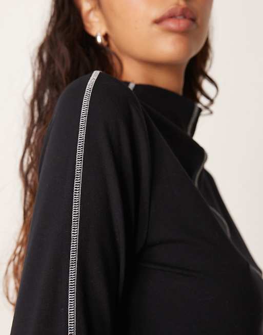 ASOS DESIGN contrast stitch high neck long sleeve top in gray