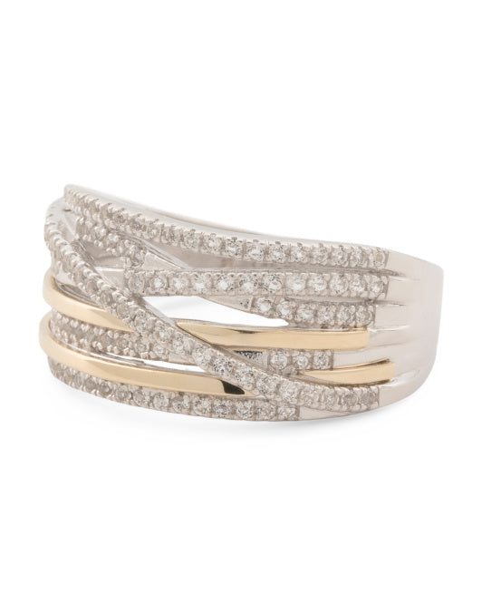 AURORA ITALO Sterling Silver And 14kt Gold White Topaz Swirl Ring