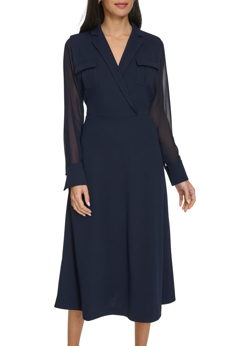 Calvin Klein Long Sleeve Mixed Media A-Line Midi Dress