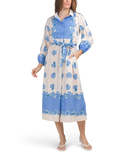CELINA MOON Long Sleeve Shell Print Midi Dress