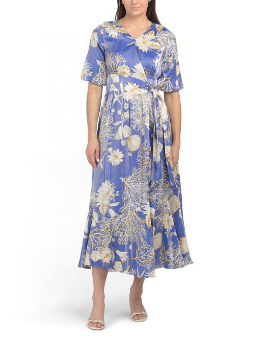 CIEBON Ariella Printed Puff Sleeve Wrap Maxi Dress