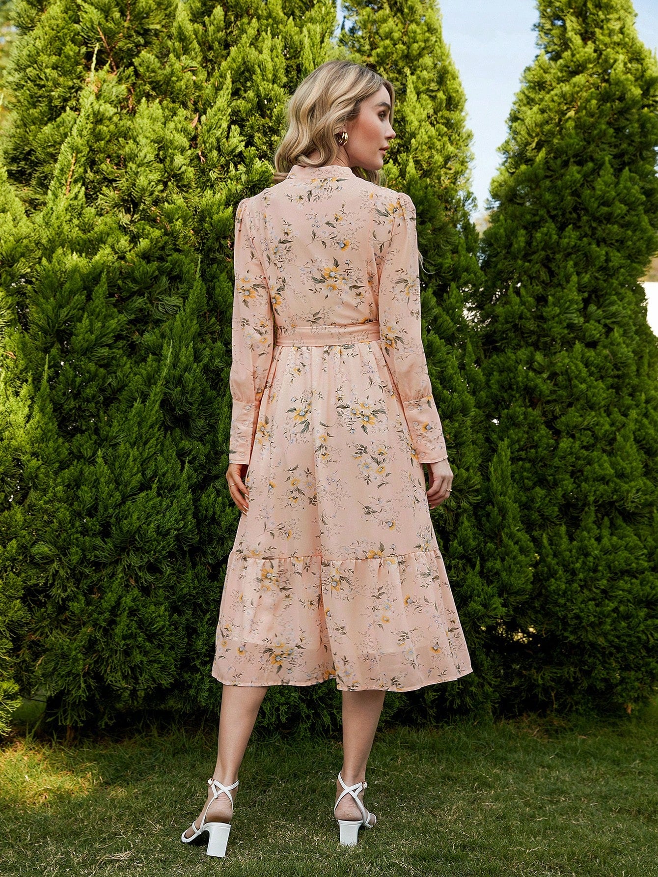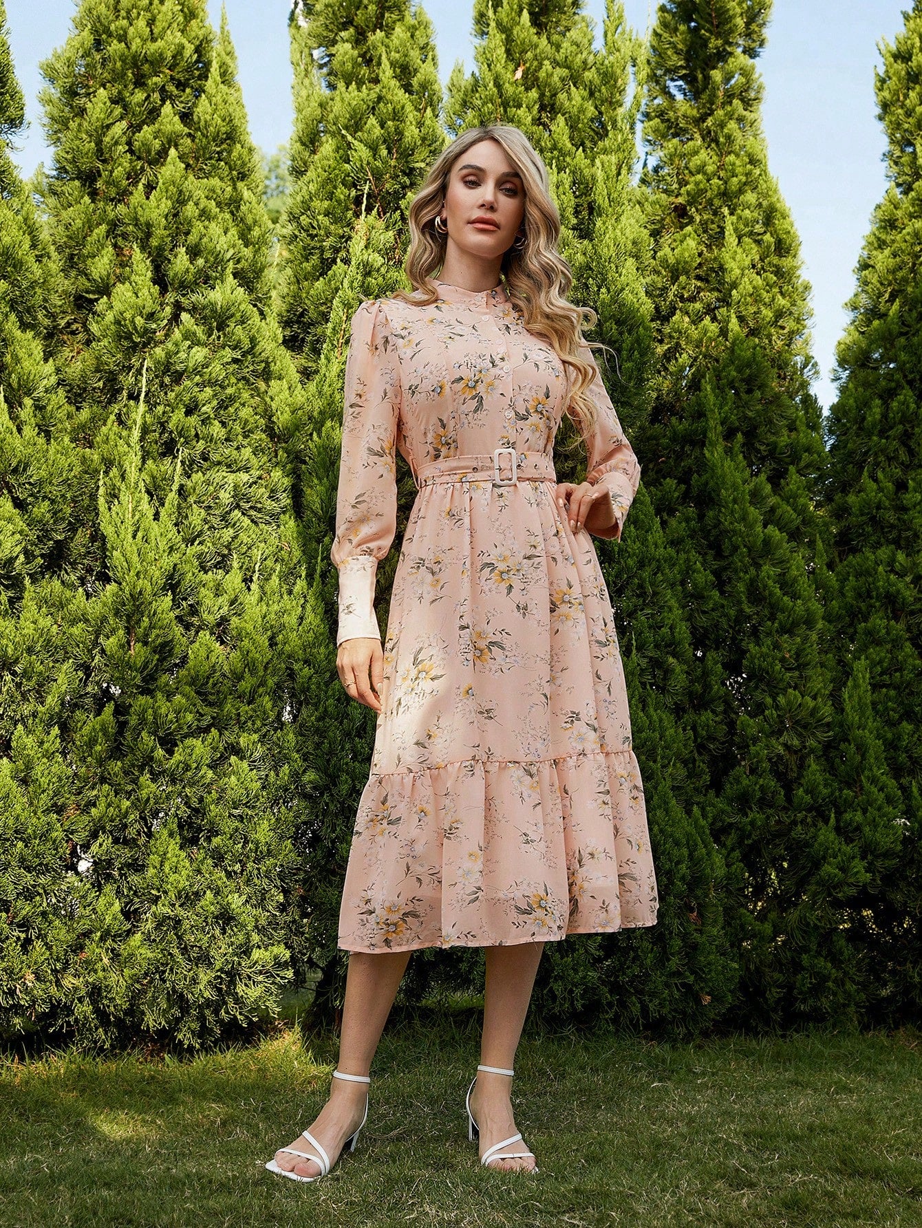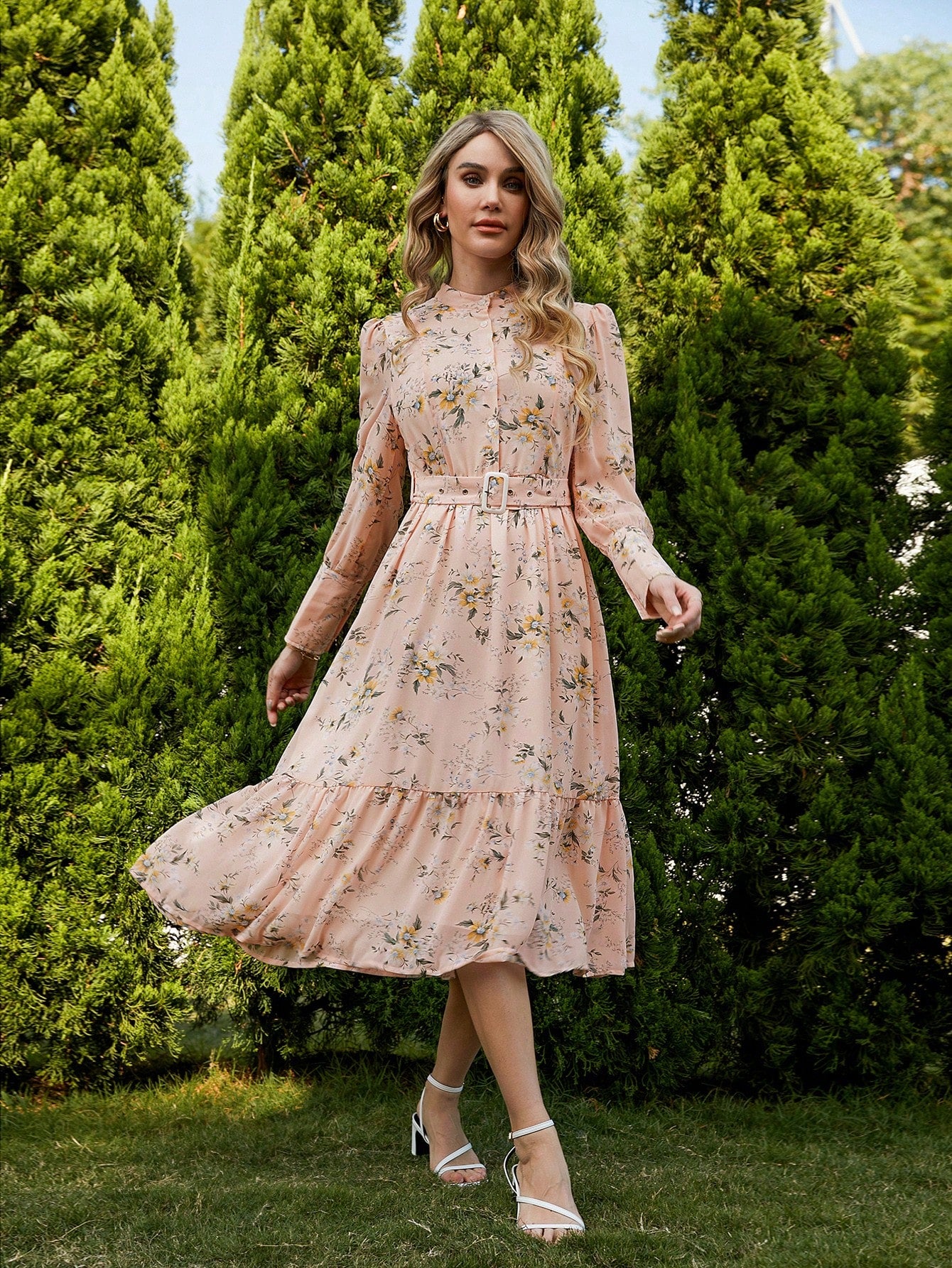 Coolest Dress Eva! Frenchy Floral Print Belted Dress For Women