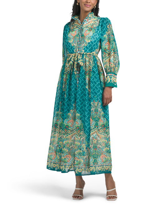 DALIA MACPHEE Deco Paisley Long Sleeve Maxi Dress With Border Detail