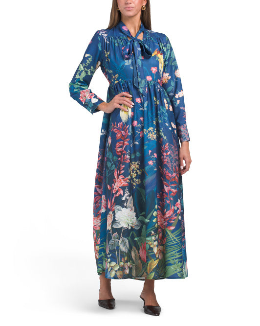 DALIA MACPHEE Long Sleeve Tie Neck Floral Maxi Dress