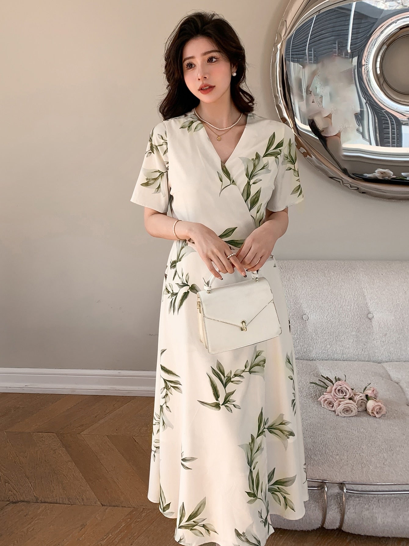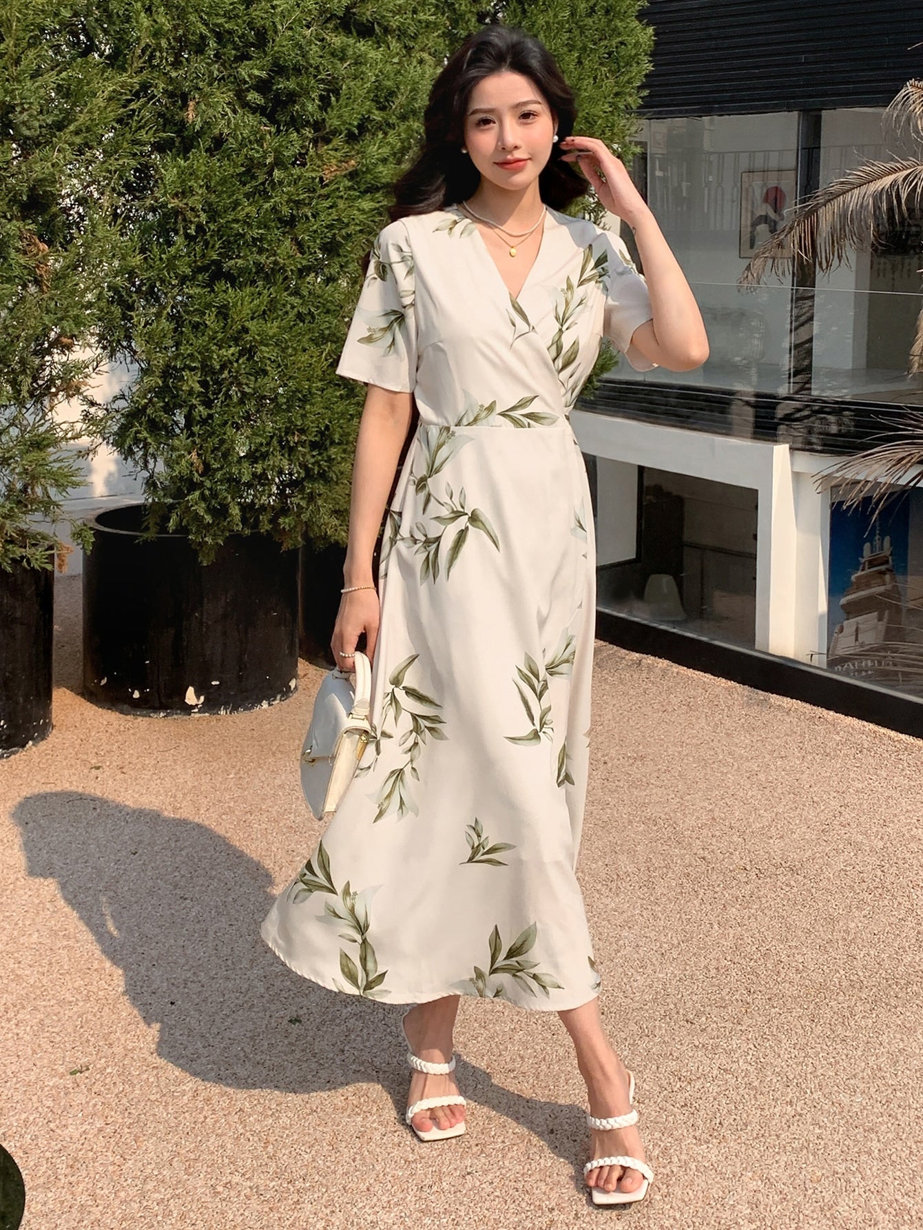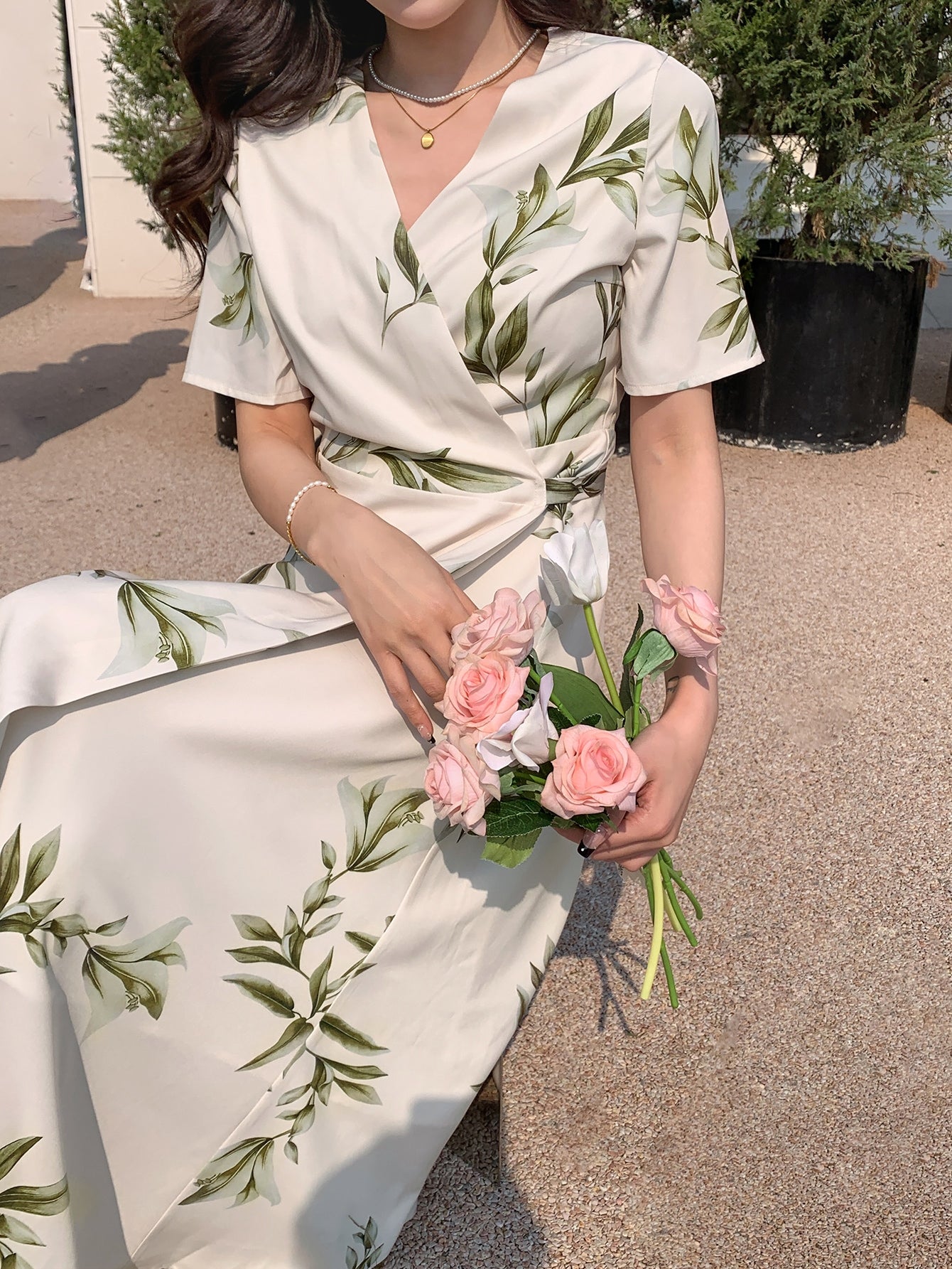 DAZY Plants Print Surplice Neck Tie Back Wrap Dress