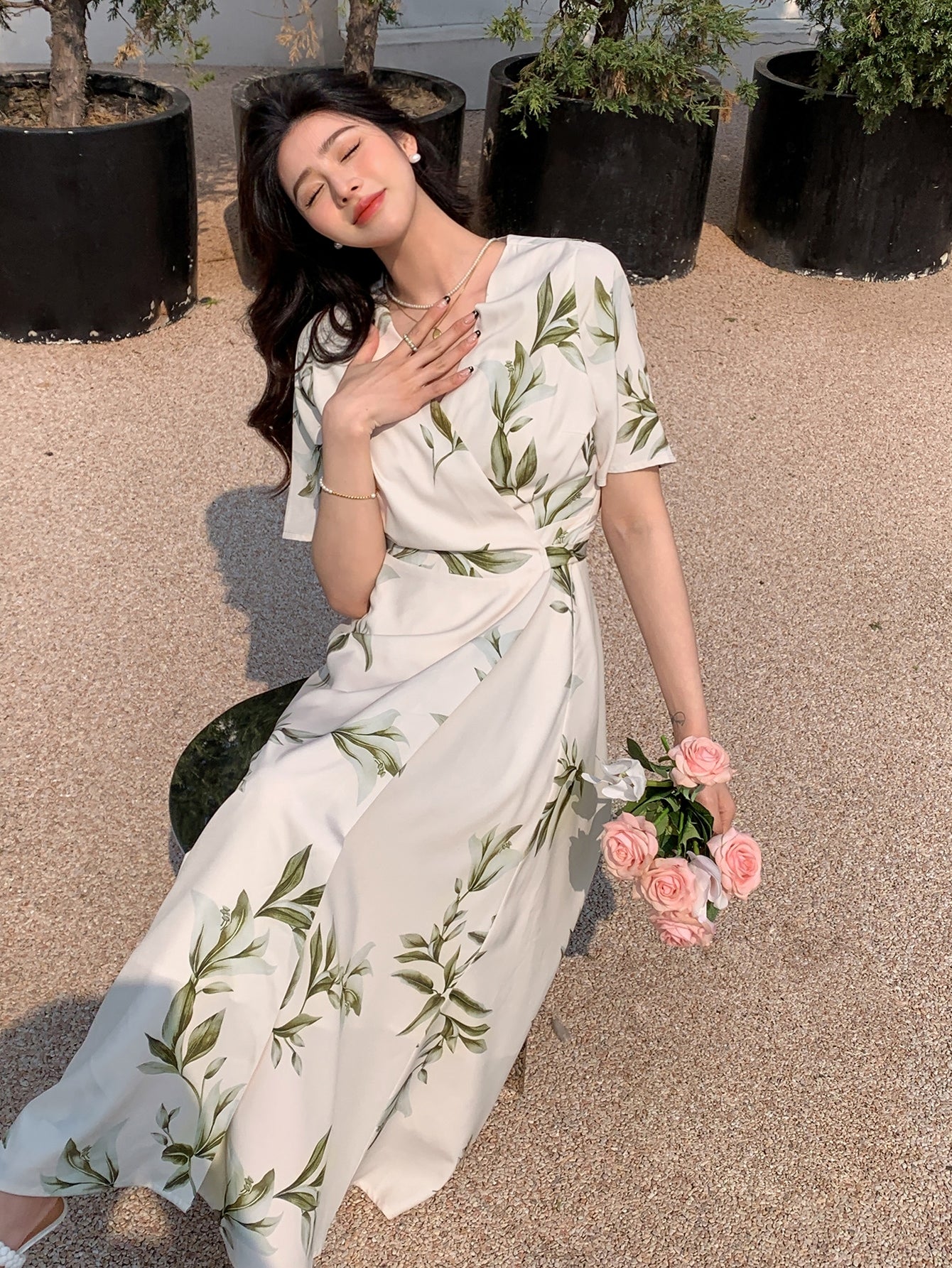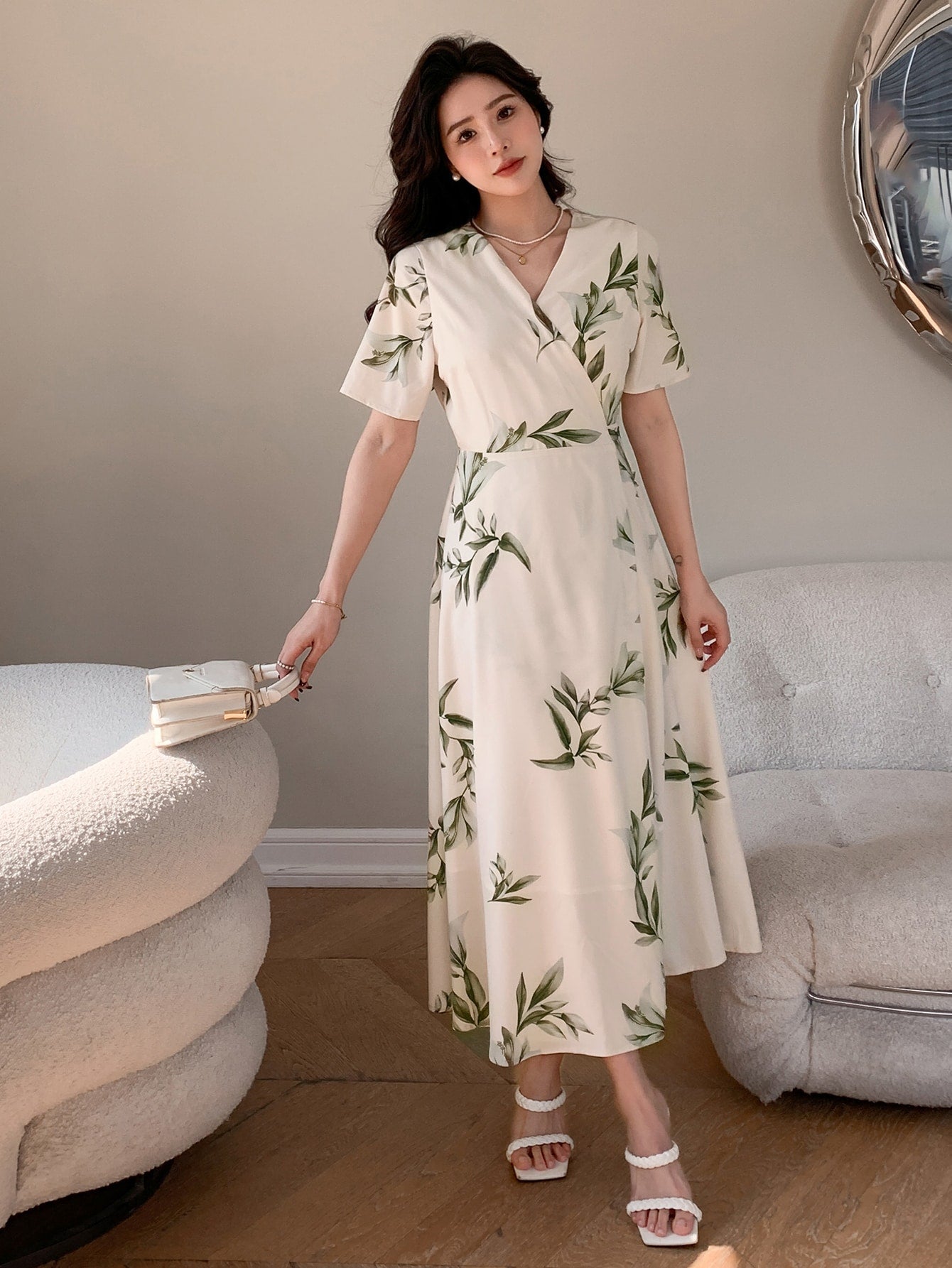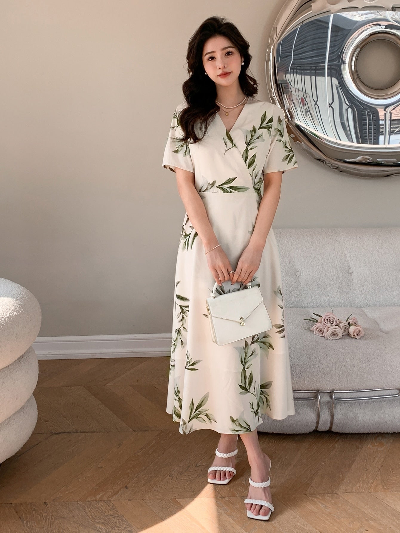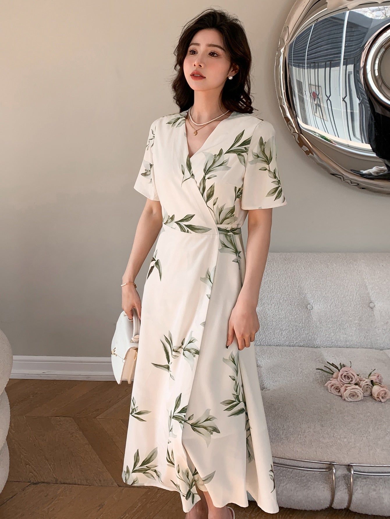 DAZY Plants Print Surplice Neck Tie Back Wrap Dress
