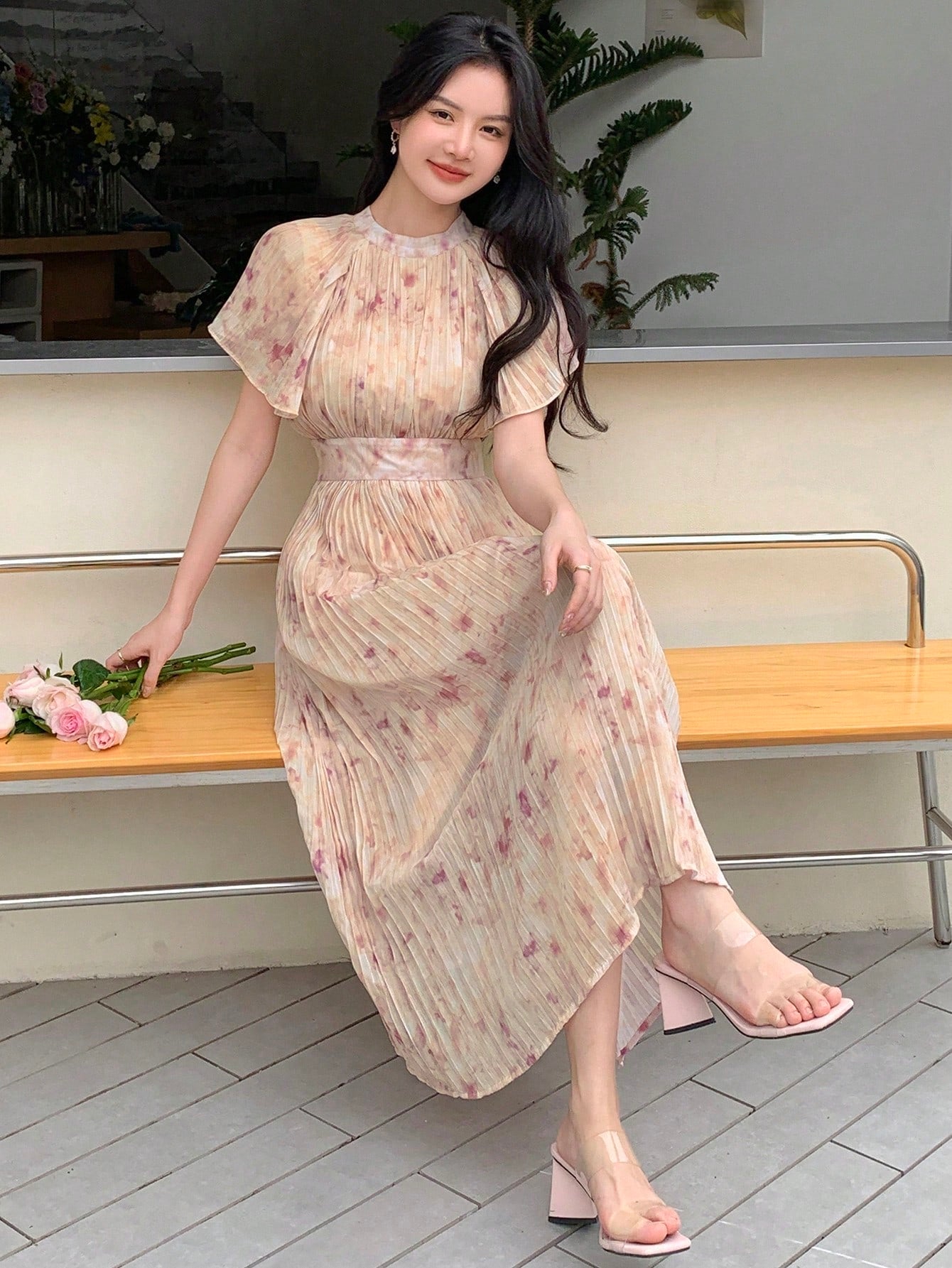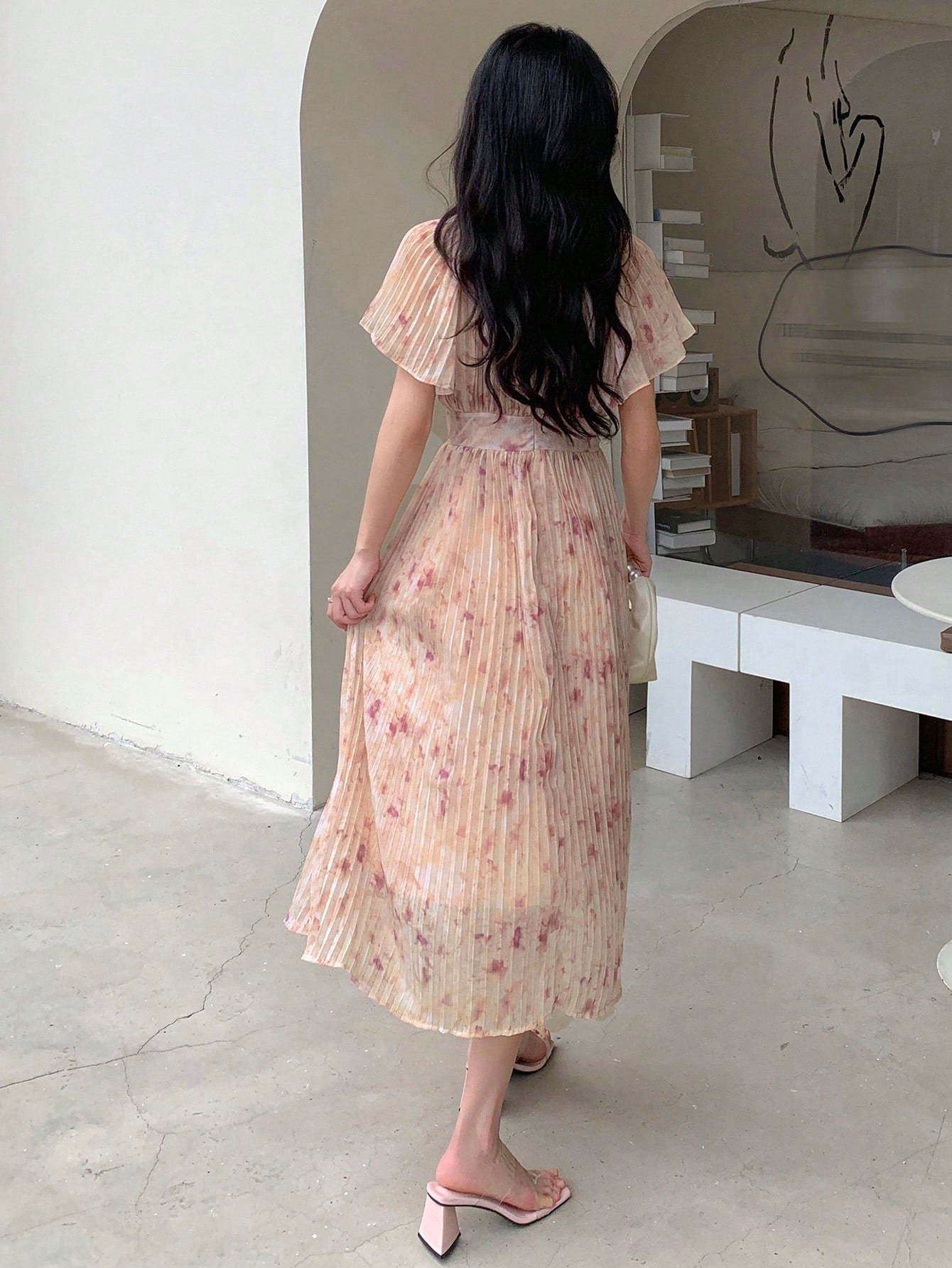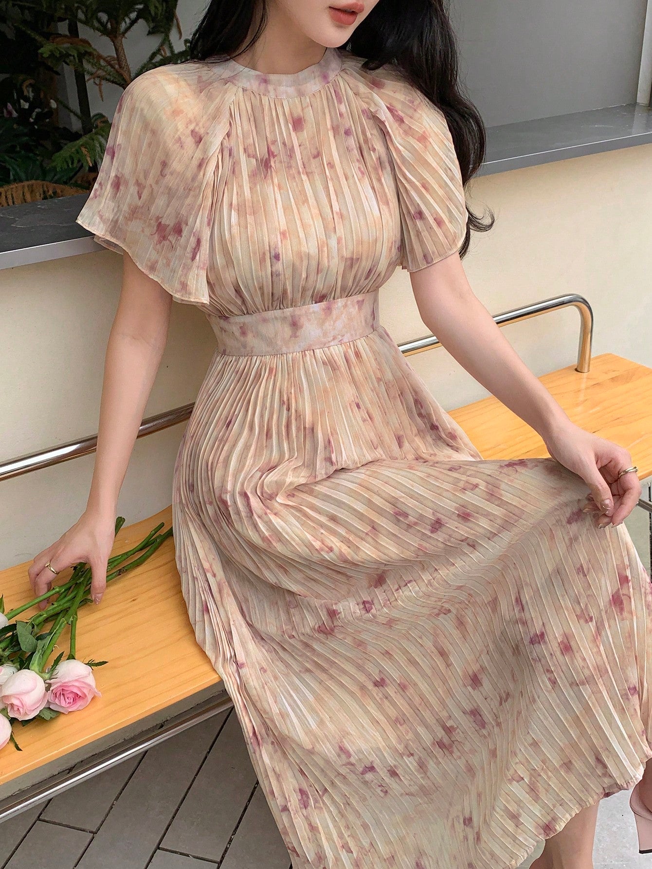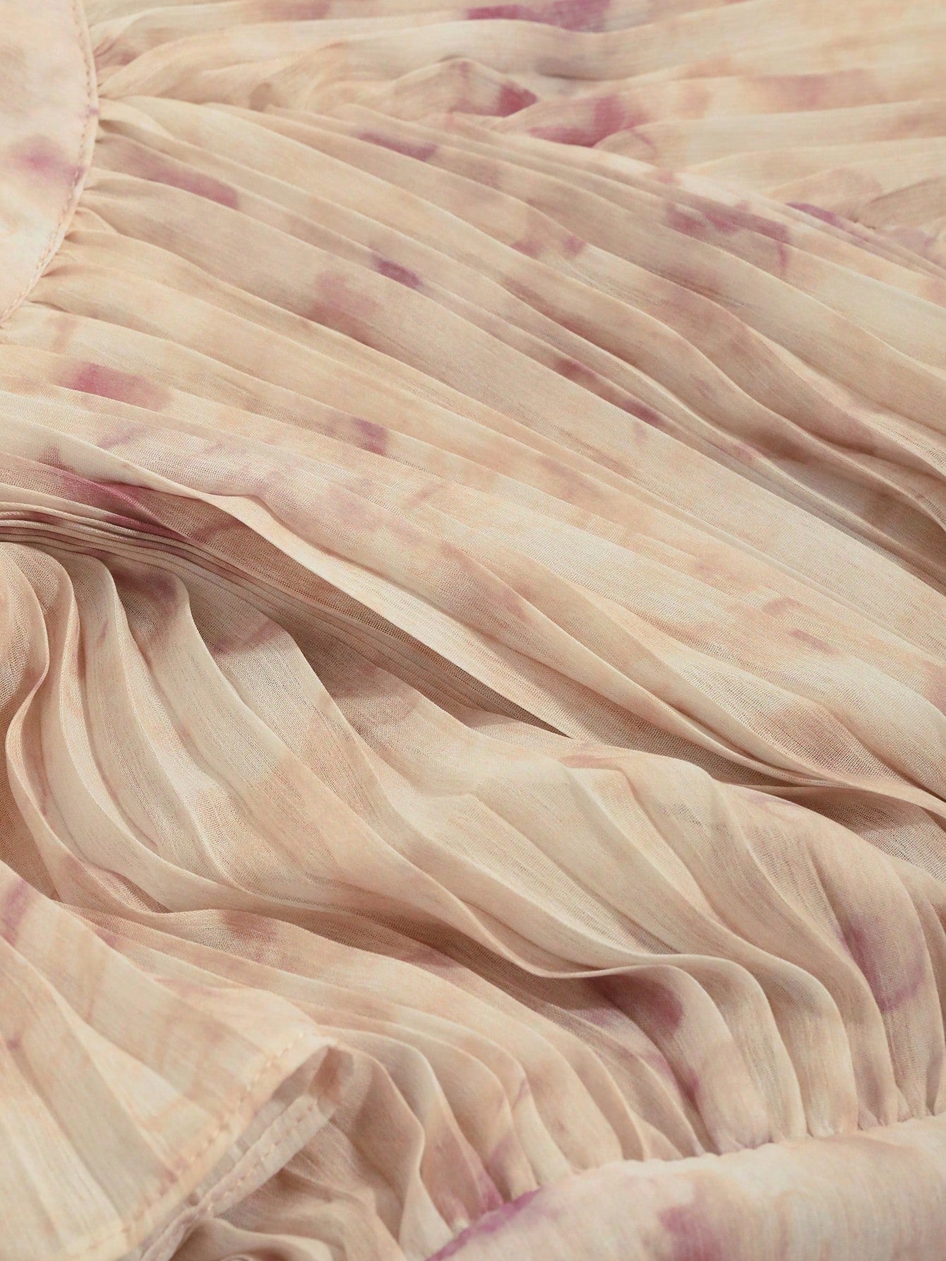 DAZY Tie Dye Pleated Detail Flounce Sleeve Dress
