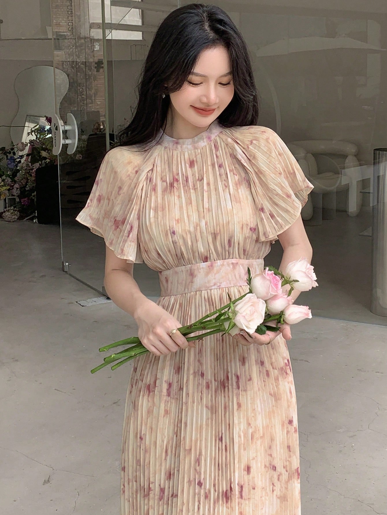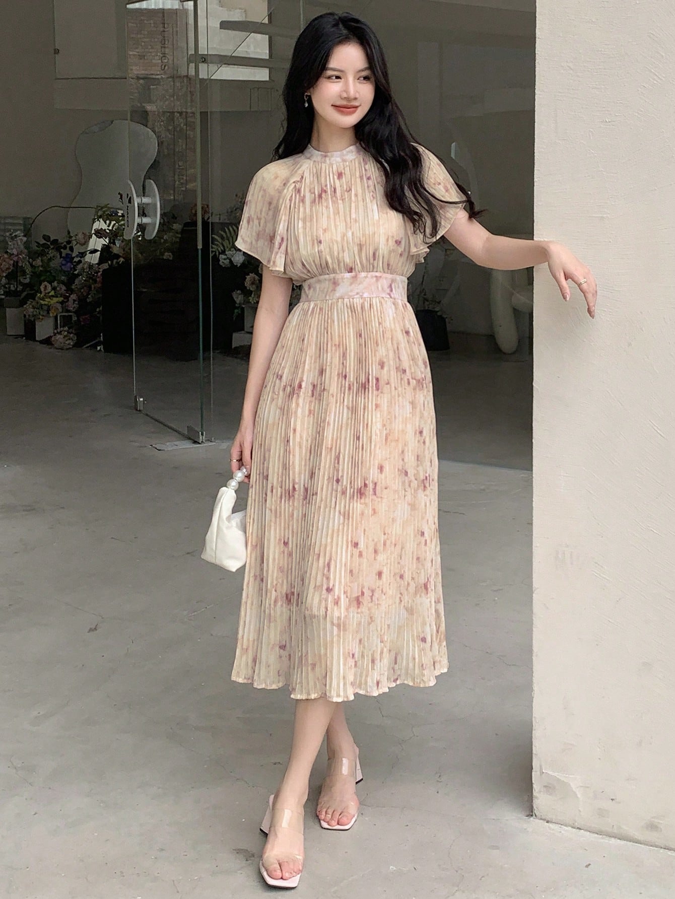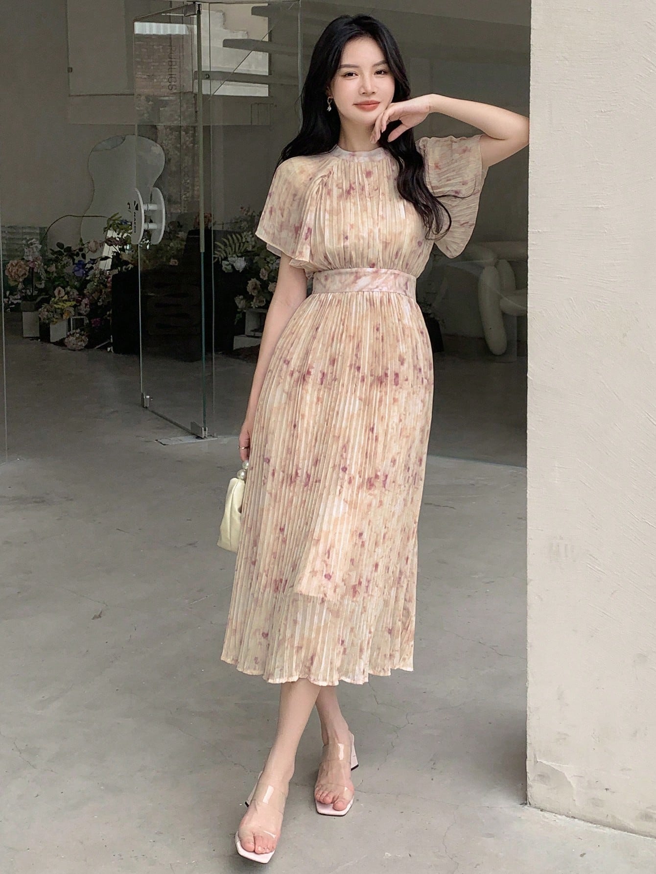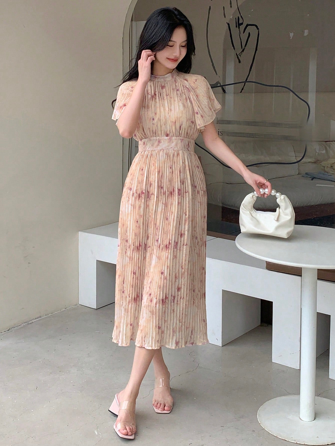 DAZY Tie Dye Pleated Detail Flounce Sleeve Dress