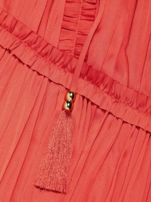 Elie Tahari Whisper Ruffle Tassel Midi Dress