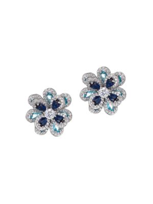 Eye Candy LA Luxe Silvertone & Cubic Zirconia Flower Stud Earrings