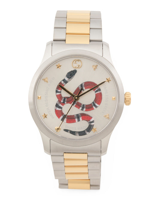 GUCCI Unisex Swiss Made G Timeless Medium 2 Tone Snake Bracelet Watch
