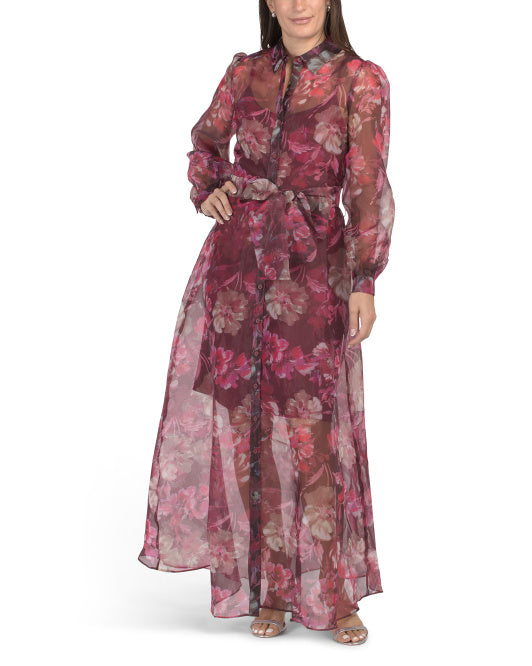 JULIA JORDAN Long Sleeve Organza Maxi Shirt Dress
