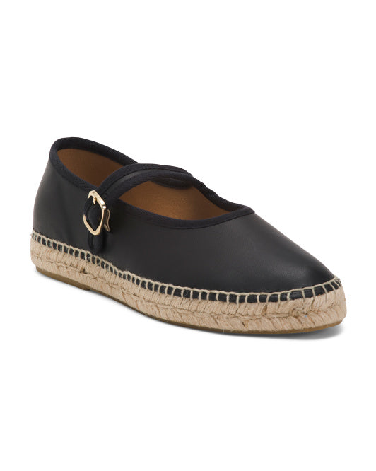 JUTELIA Made In Spain Leather Mary Jane Espadrilles