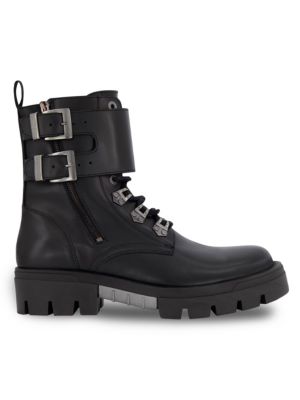 Karl Lagerfeld Paris Log Sole Leather Combat Boots