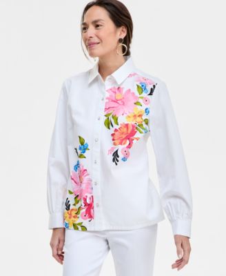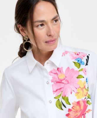 Macy's JM CollectionWomen's Printed Cotton-Poplin Blouse, Exclusively at Macy's