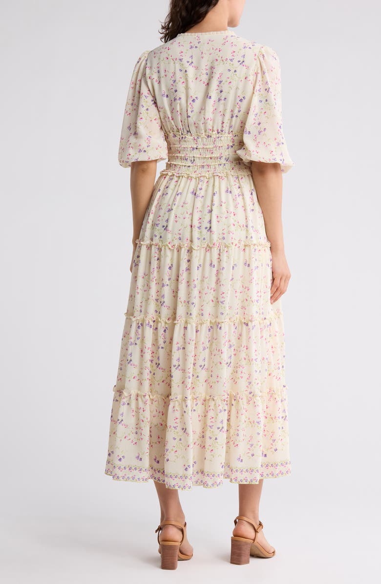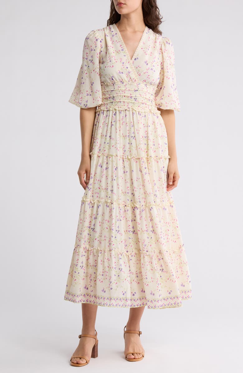 MAX STUDIO Floral Balloon Sleeve Tiered Maxi Dress