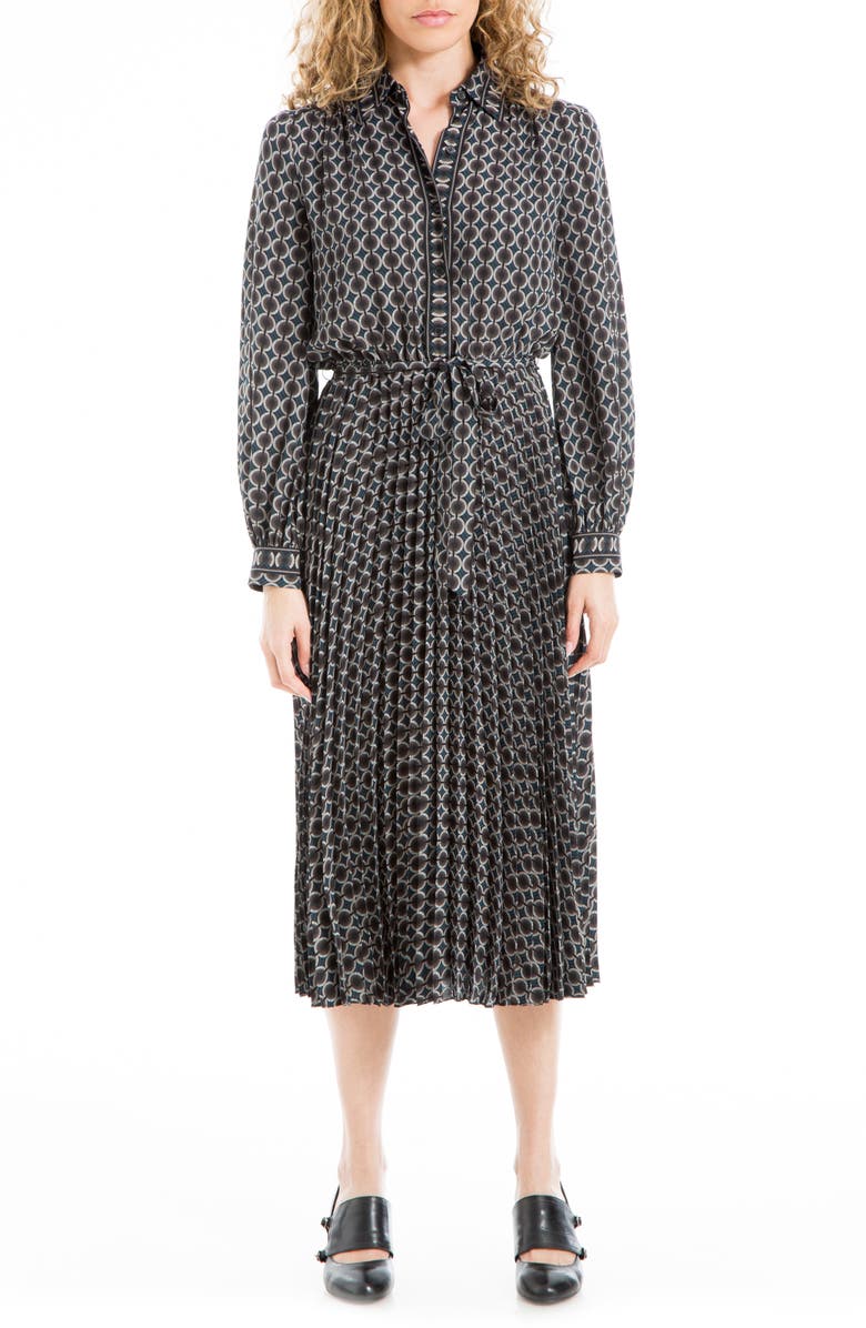 MAX STUDIO Long Sleeve Pleated Shirtdress