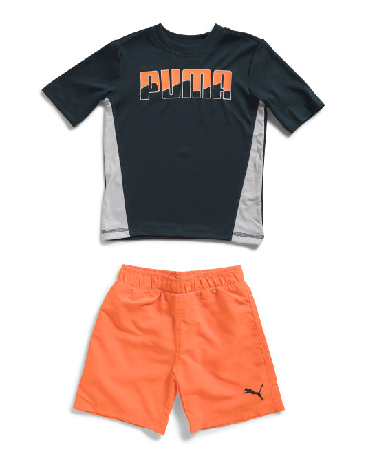 PUMA Boys 2pc Short Sleeve Rashguard And Swim Trunks Set