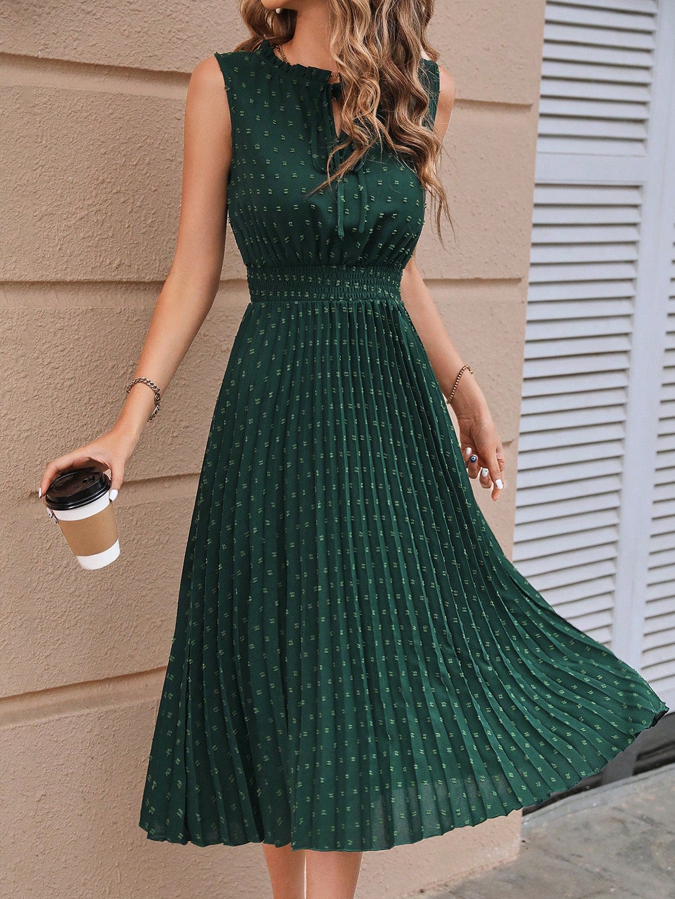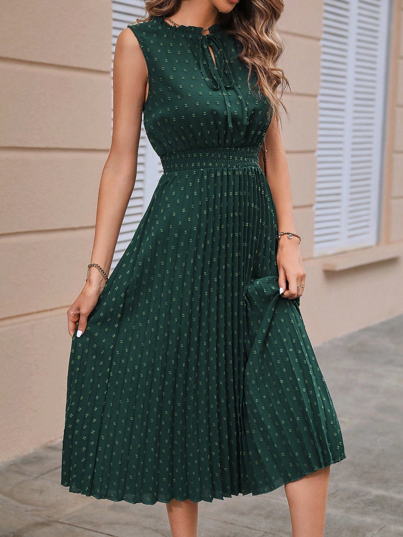SHEIN Clasi Tie Neck Pleated Hem Dress