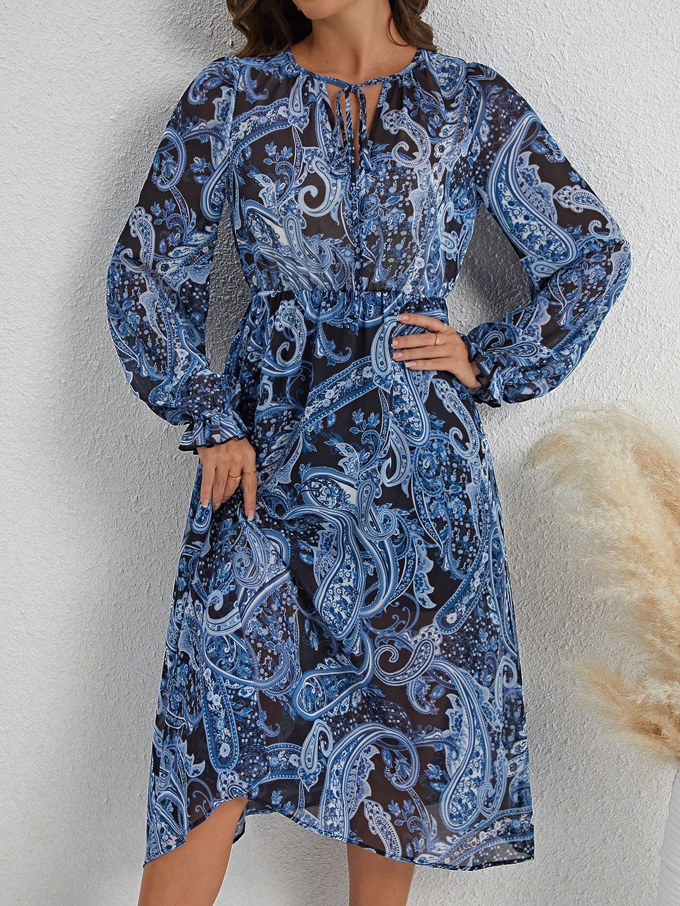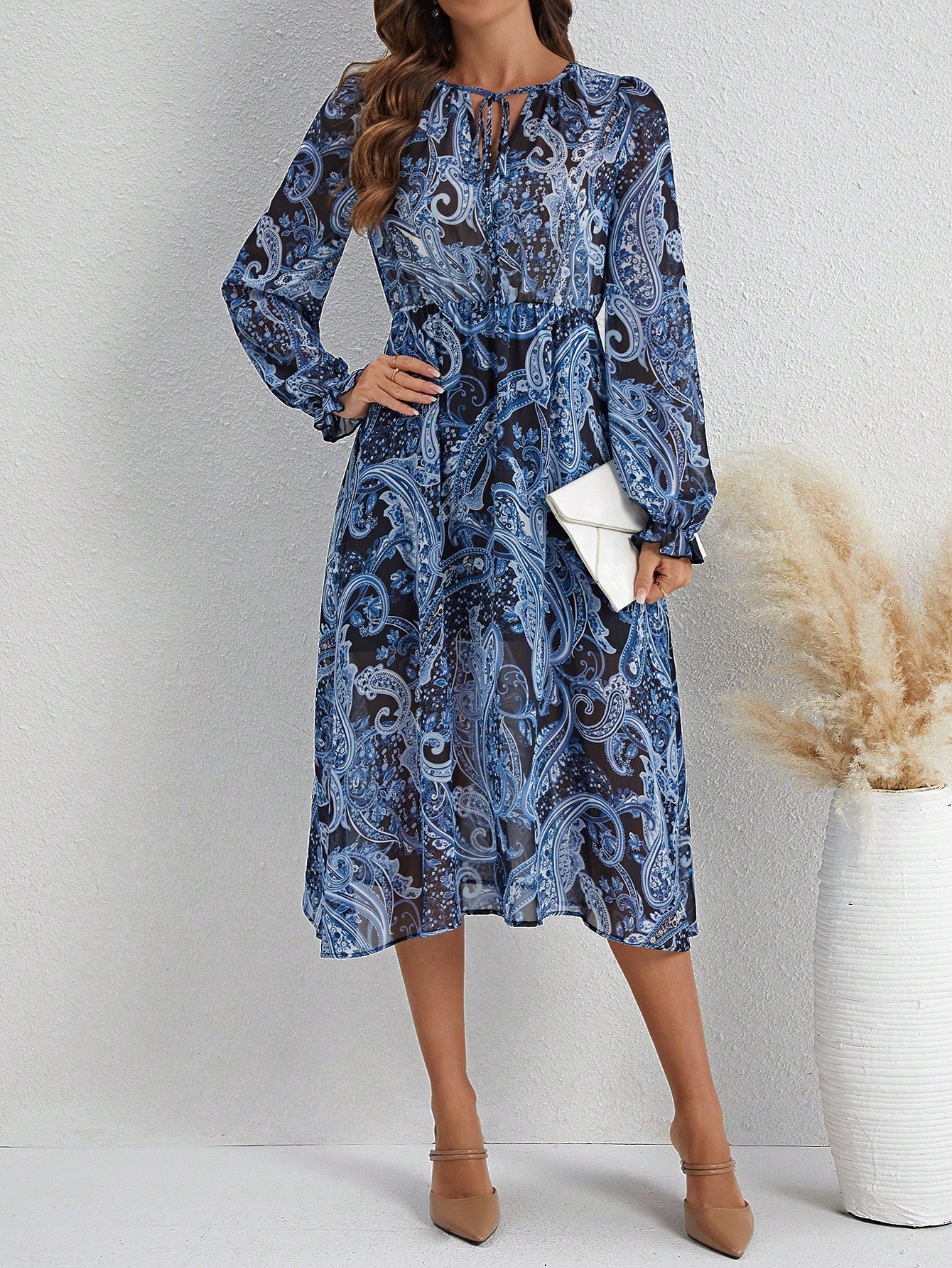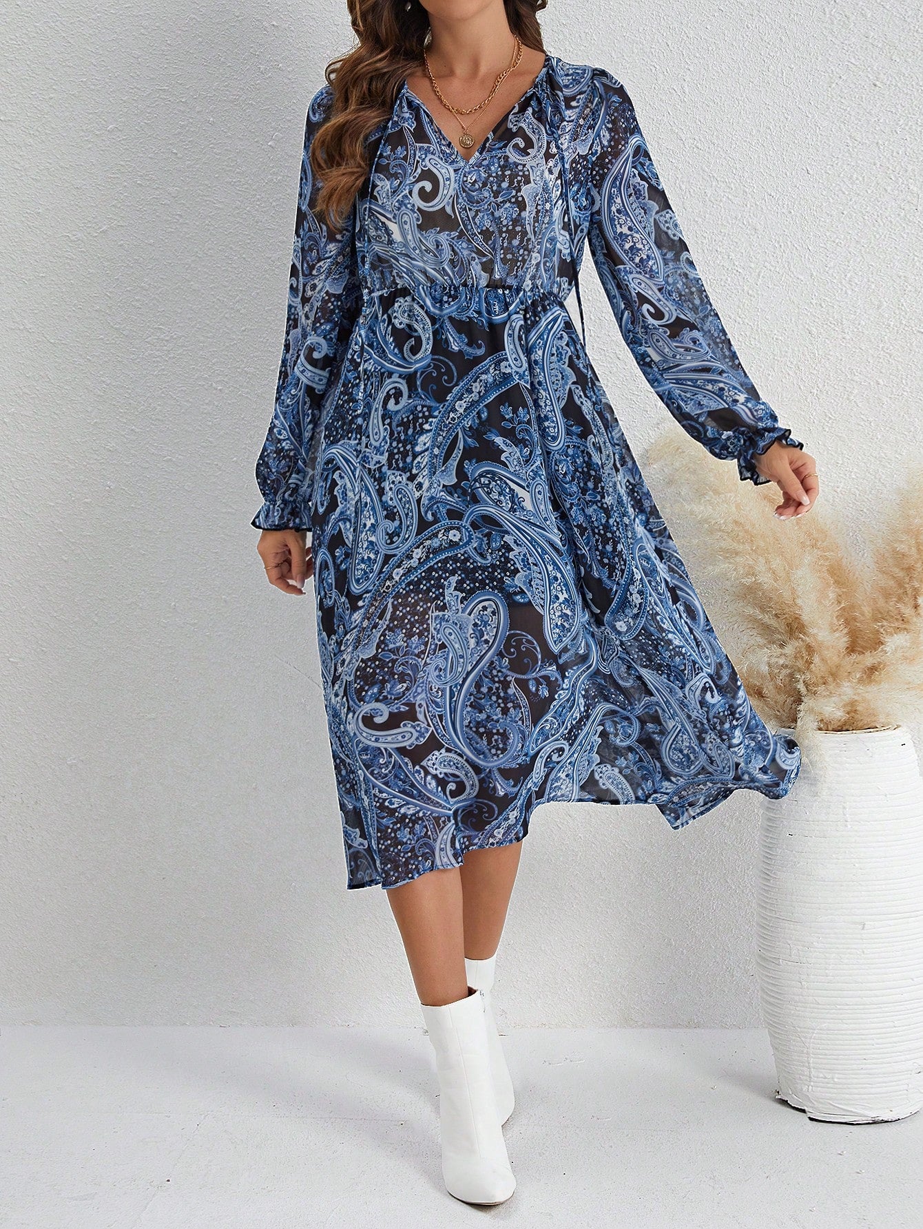 SHEIN Clasi Women's Paisley Print Neck Tie Waist Dress
