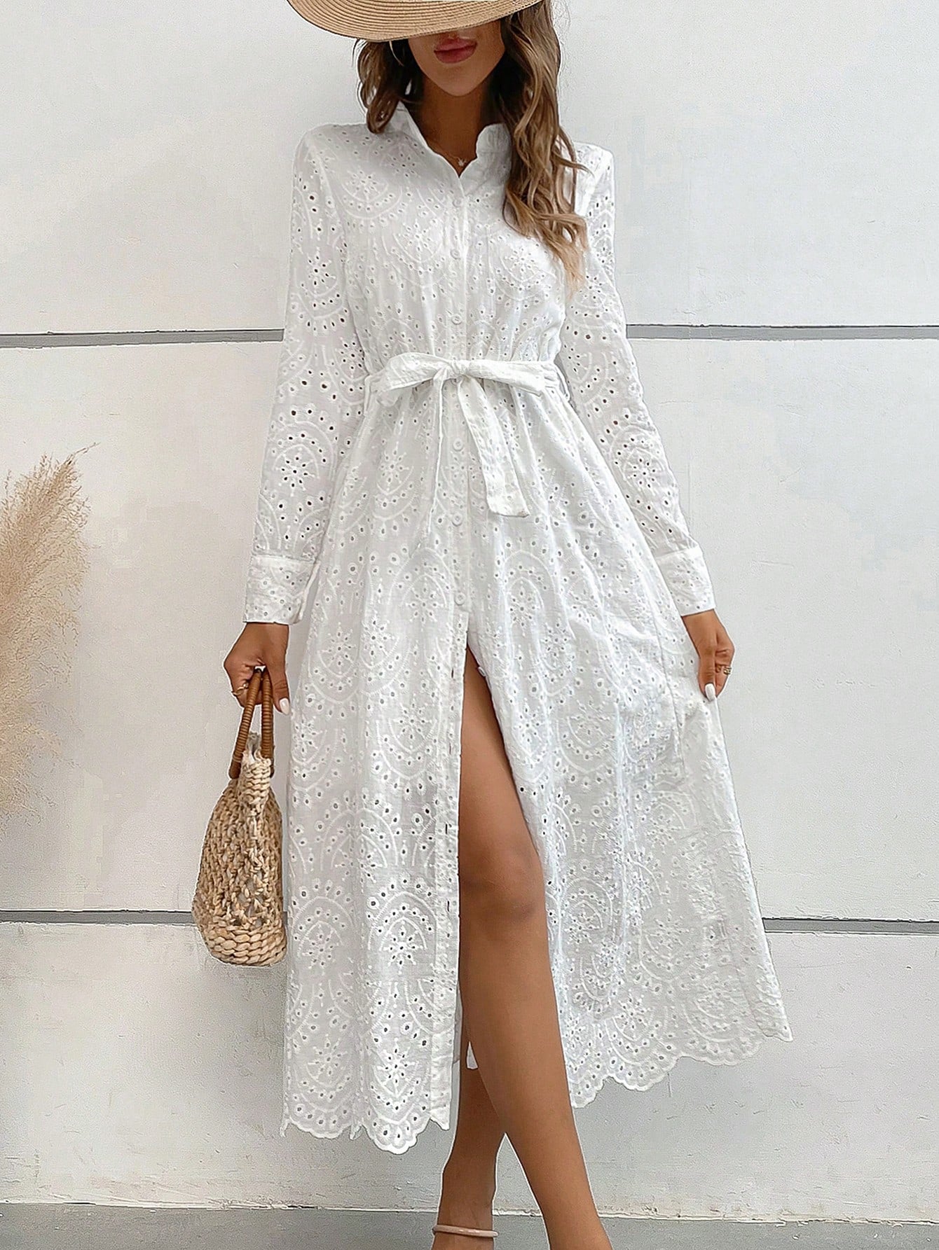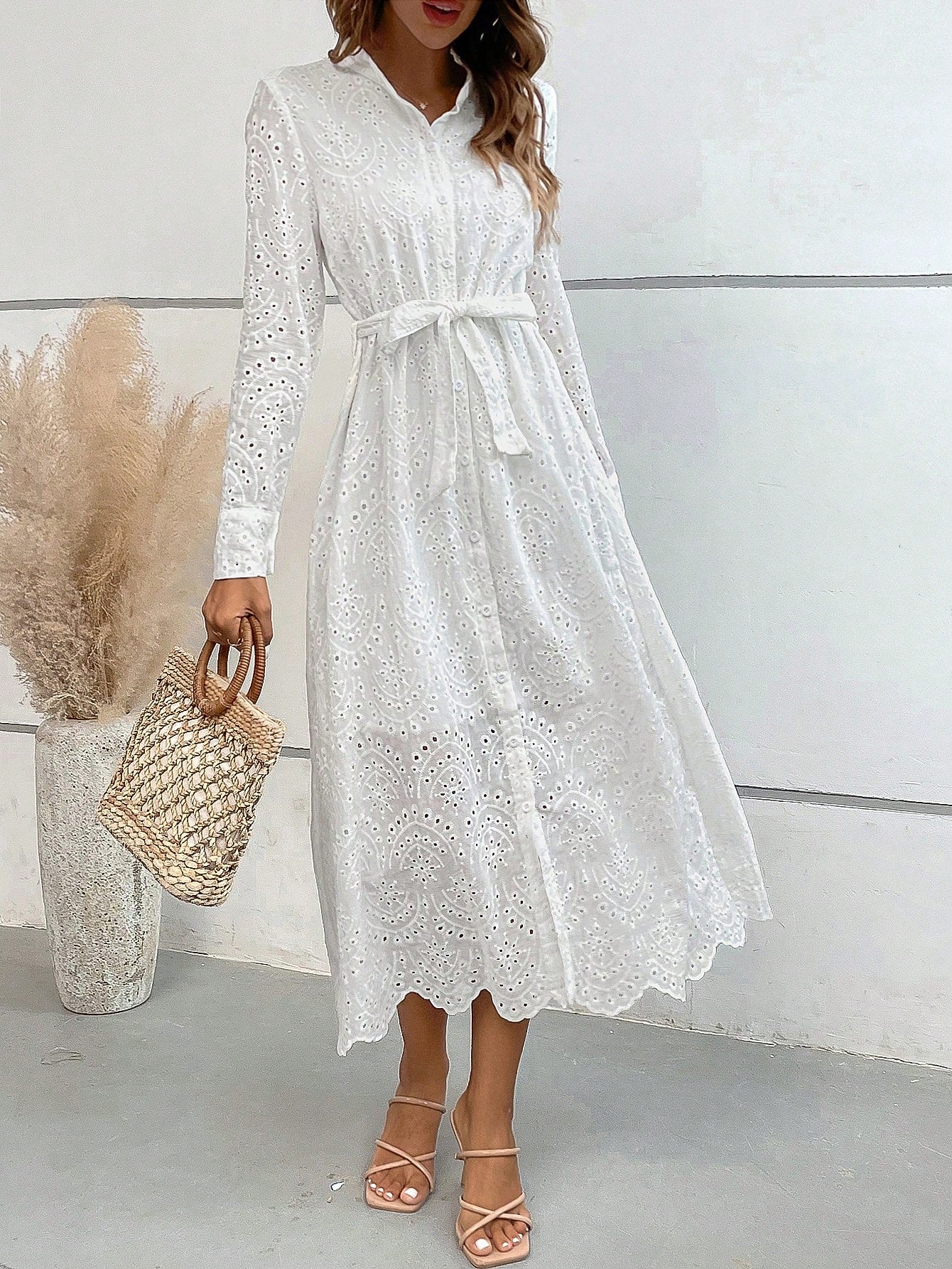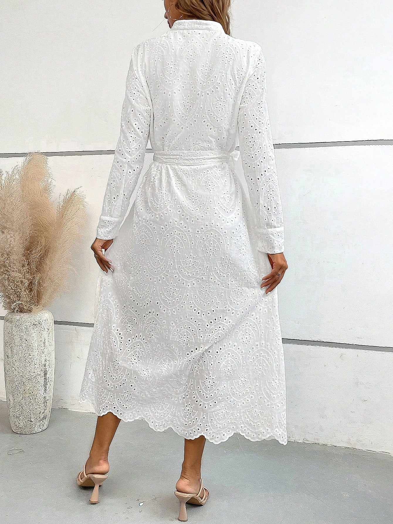 SHEIN LUNE Eyelet Embroidery Belted Shirt Dress
