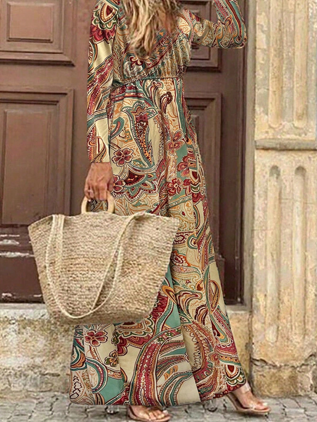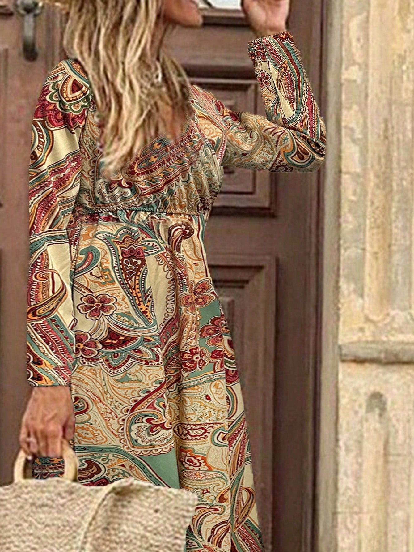 SHEIN LUNE Paisley Pattern Printed Long Sleeve Dress