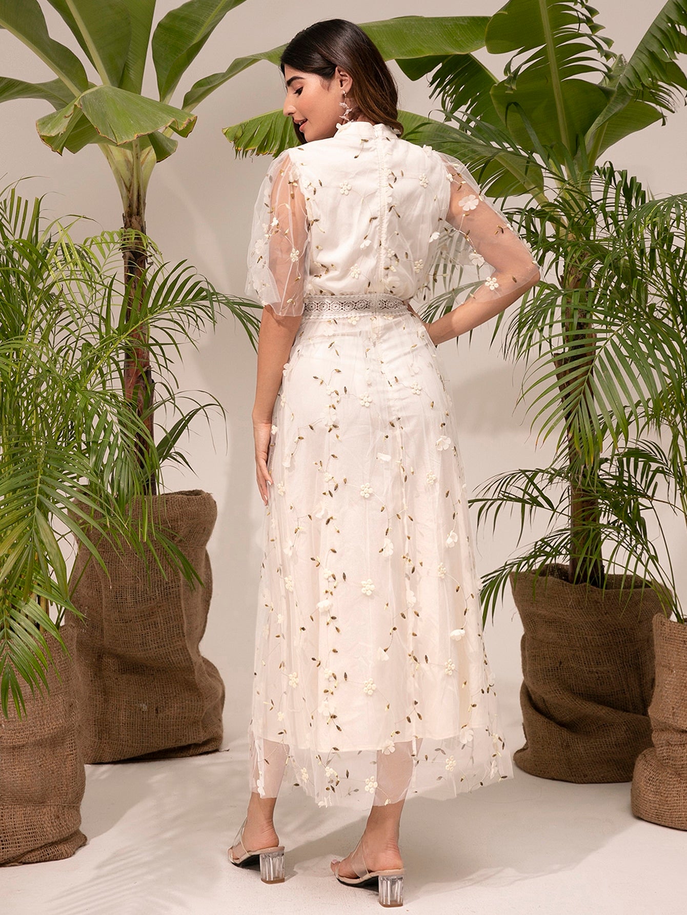 SHEIN Modely Mock Neck Embroidery Mesh Dress