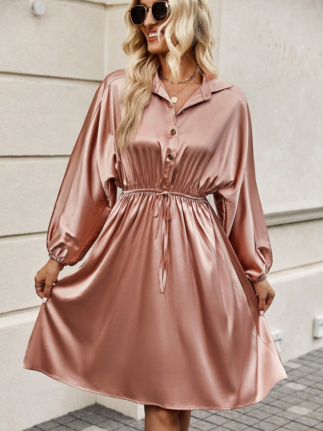 SHEIN Privé Batwing Sleeve Knot Front Shirt Dress