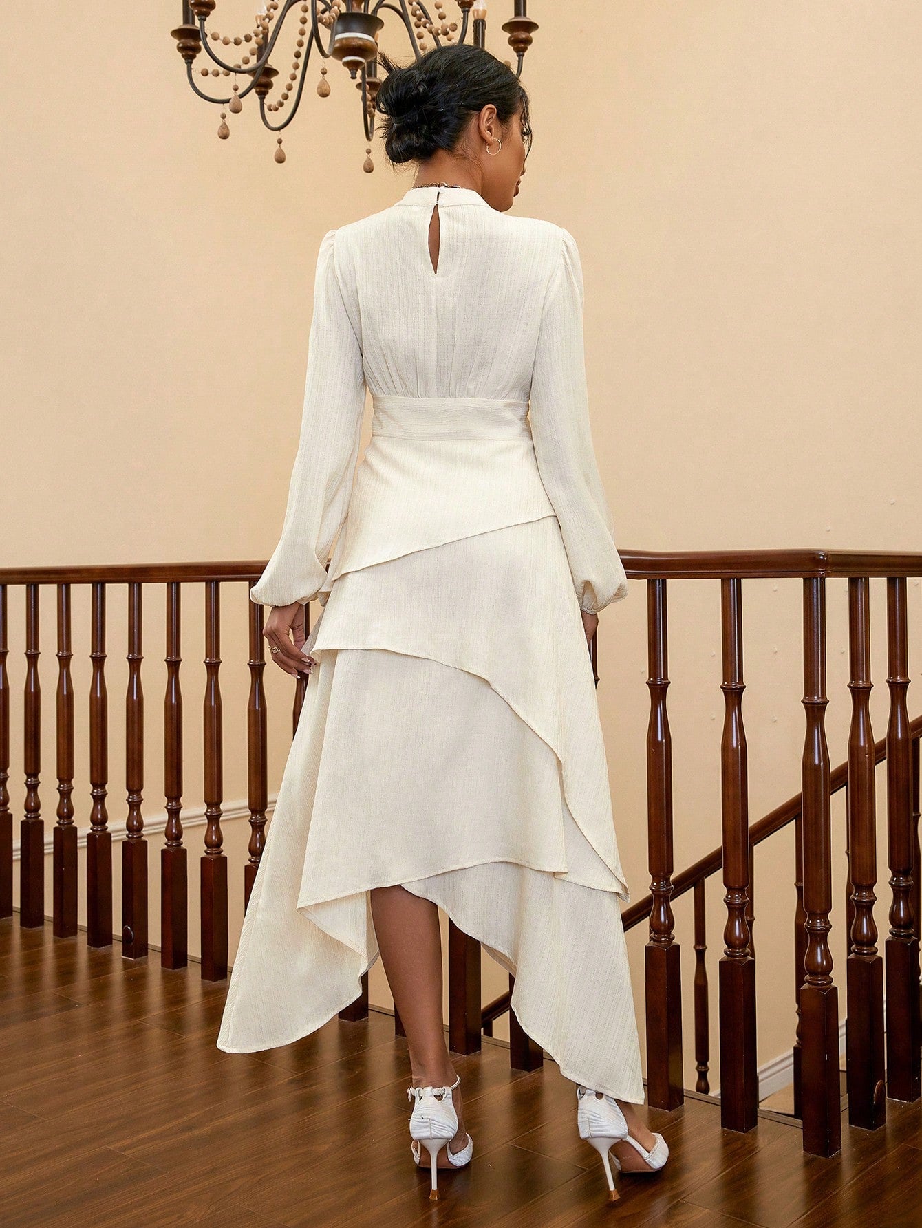 SHEIN Privé Irregular Hem Lantern Sleeve Long Sleeve Dress For Going Out