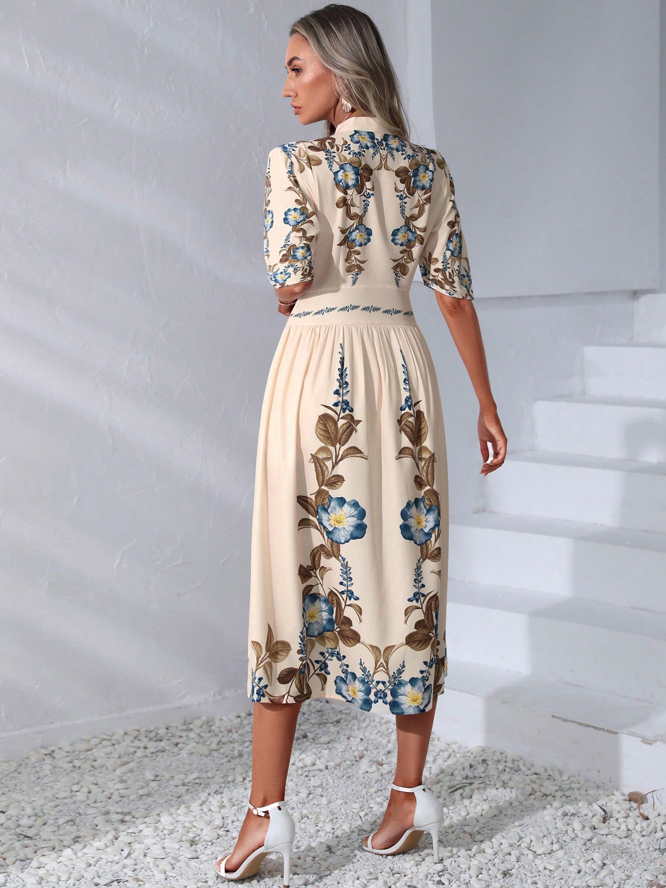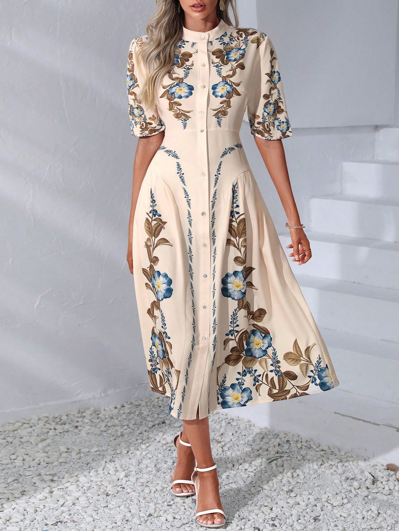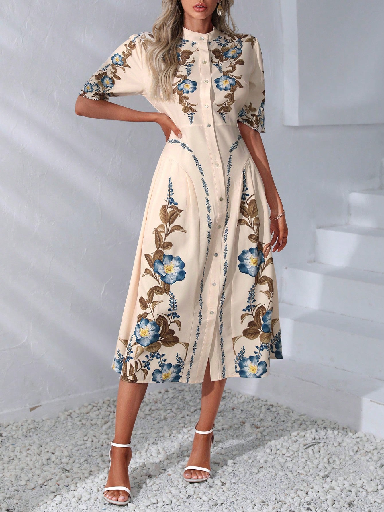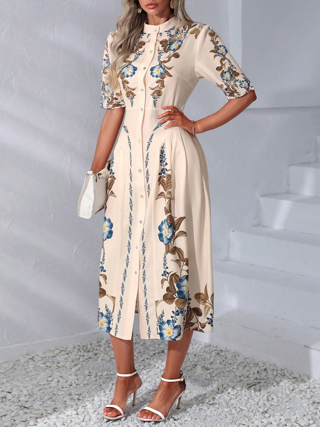SHEIN VCAY Floral Print Button Front Shirt Dress