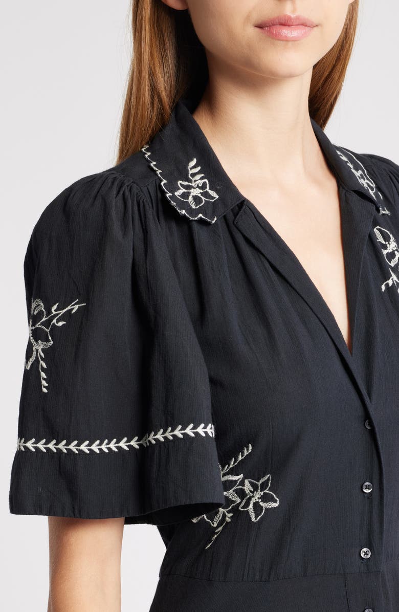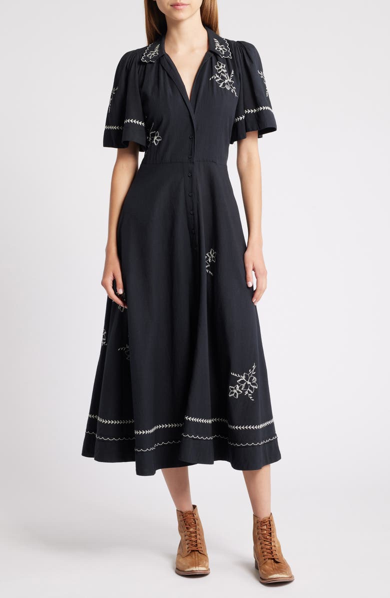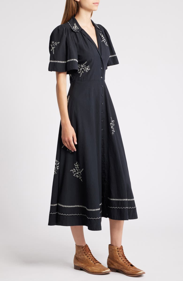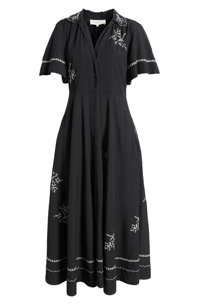 THE GREAT. Bridge Embroidered Cotton Midi Shirtdress
