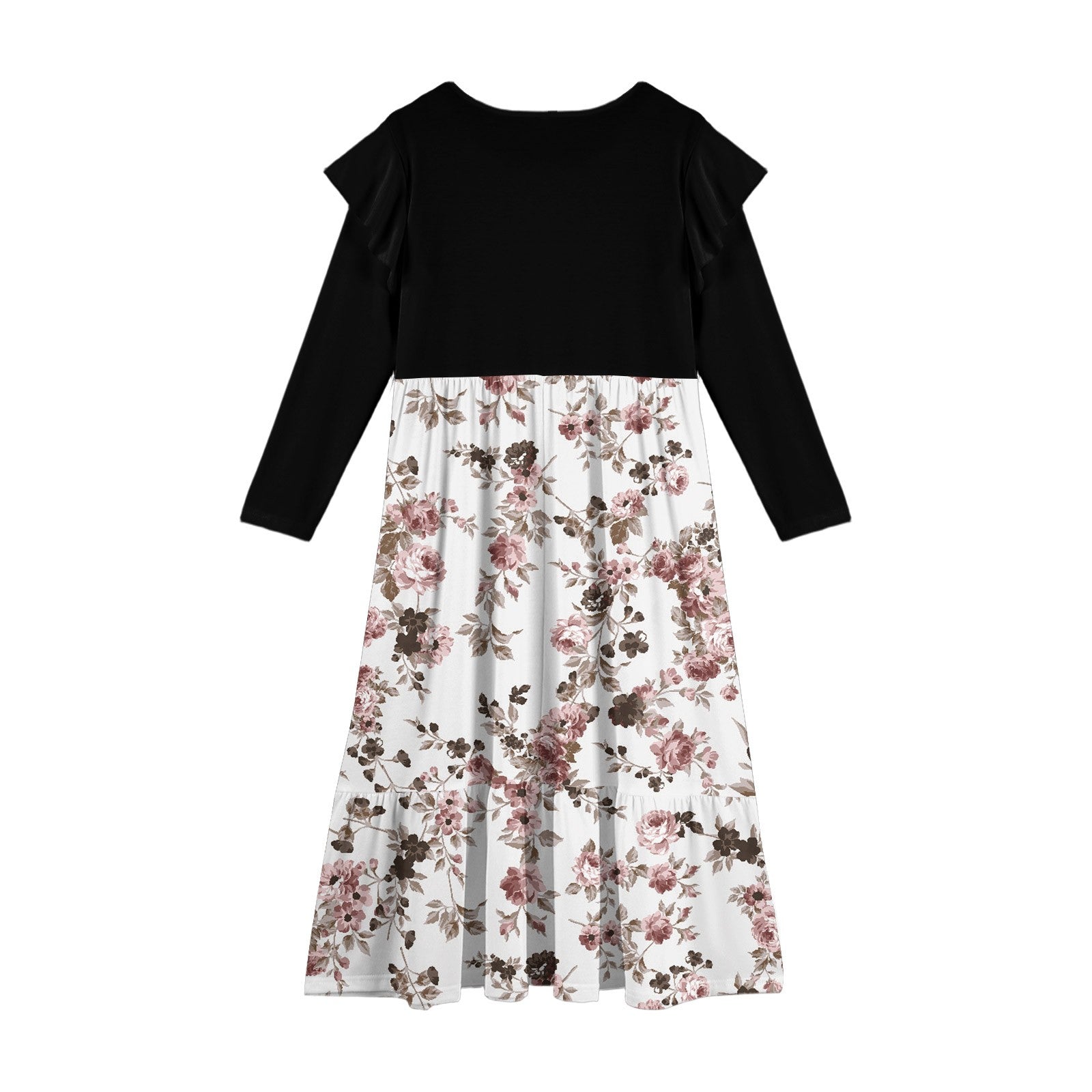 Walmart Abcomgle Girls Maxi Dresses 7-8 Casual Patchwork Ruffle Long Sleeve Girls Long Dresses Vintage Floral Print Crew Neck Sundresses Tiered Flowy Dresses with Pockets,11-12 Years White