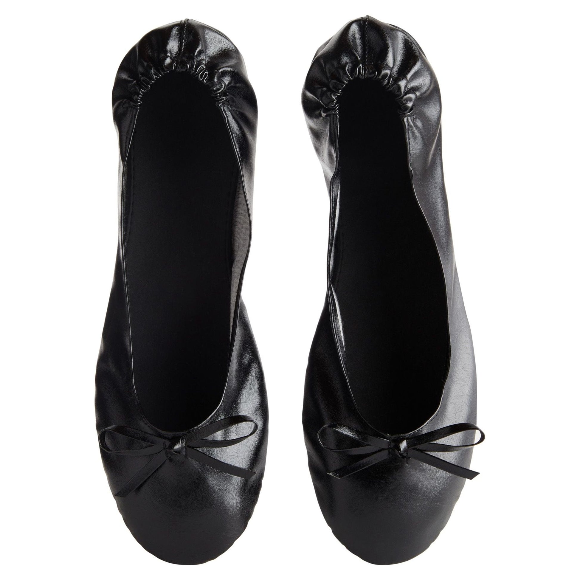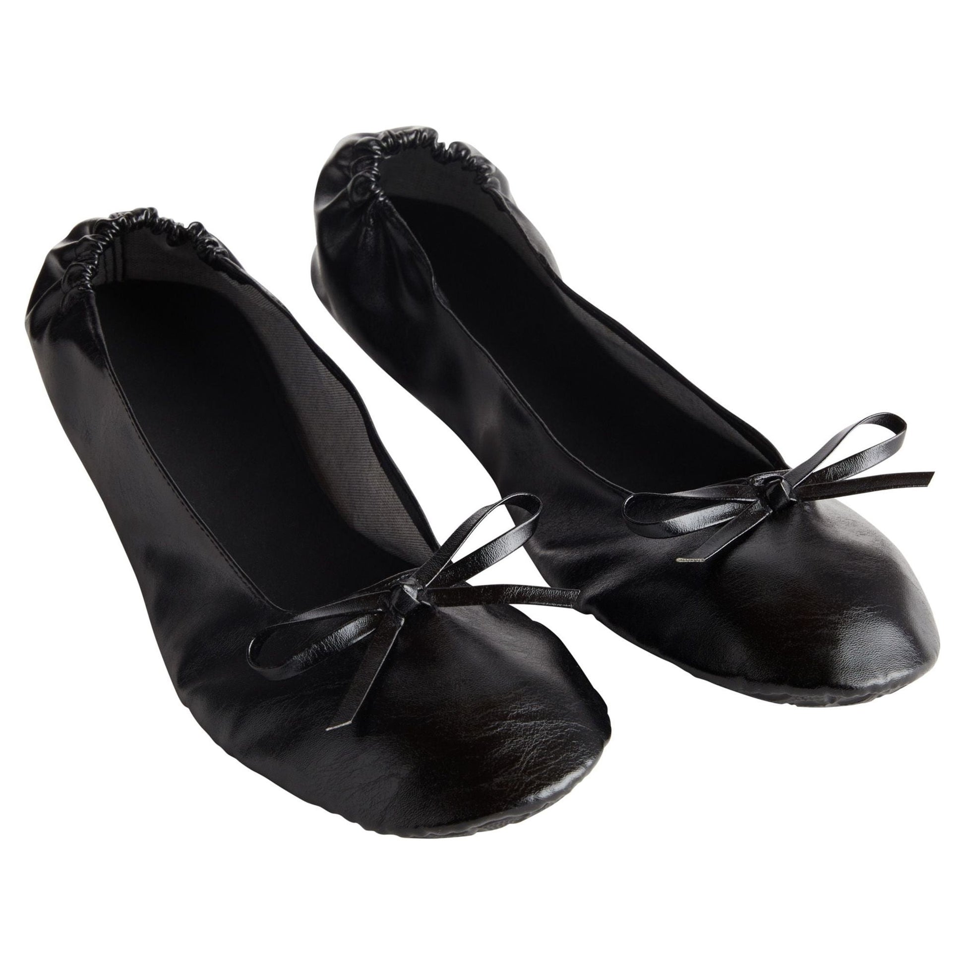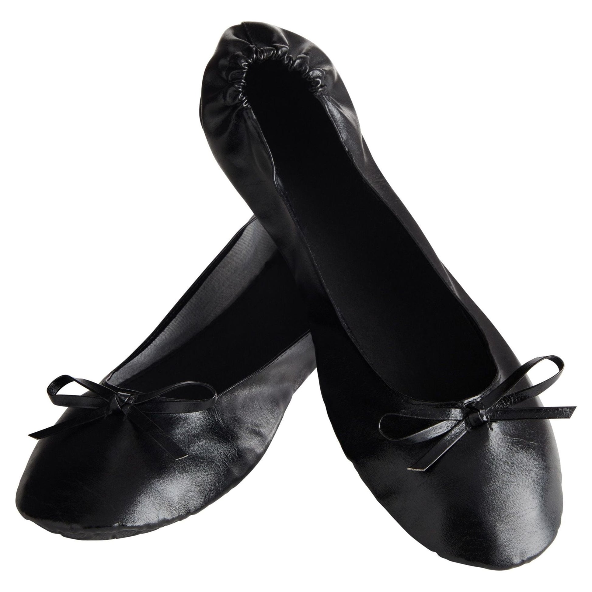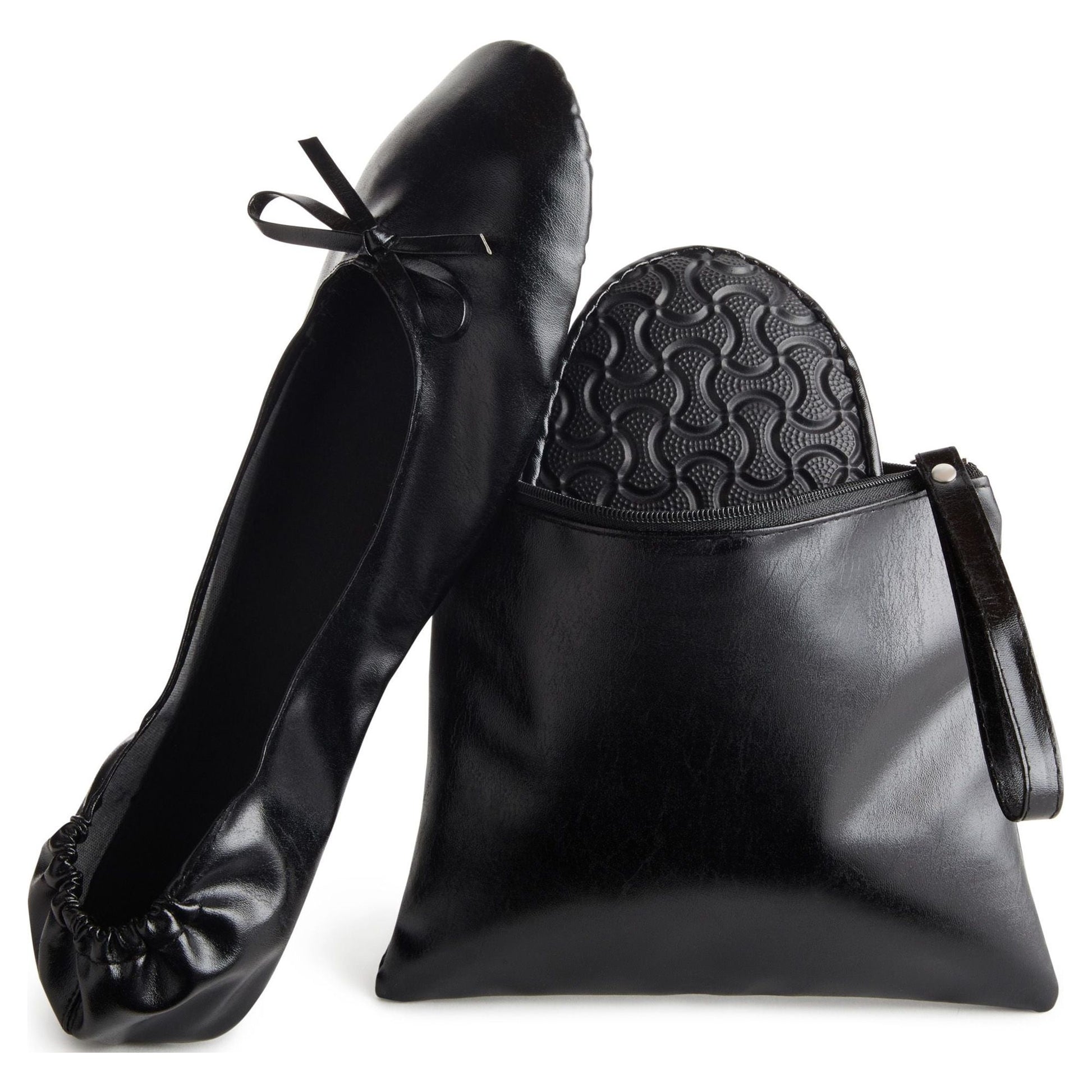 Walmart Black Foldable Ballet Flats for Women, Roll Up Flats with Zipper Pouch, US Size 8.5-9.5