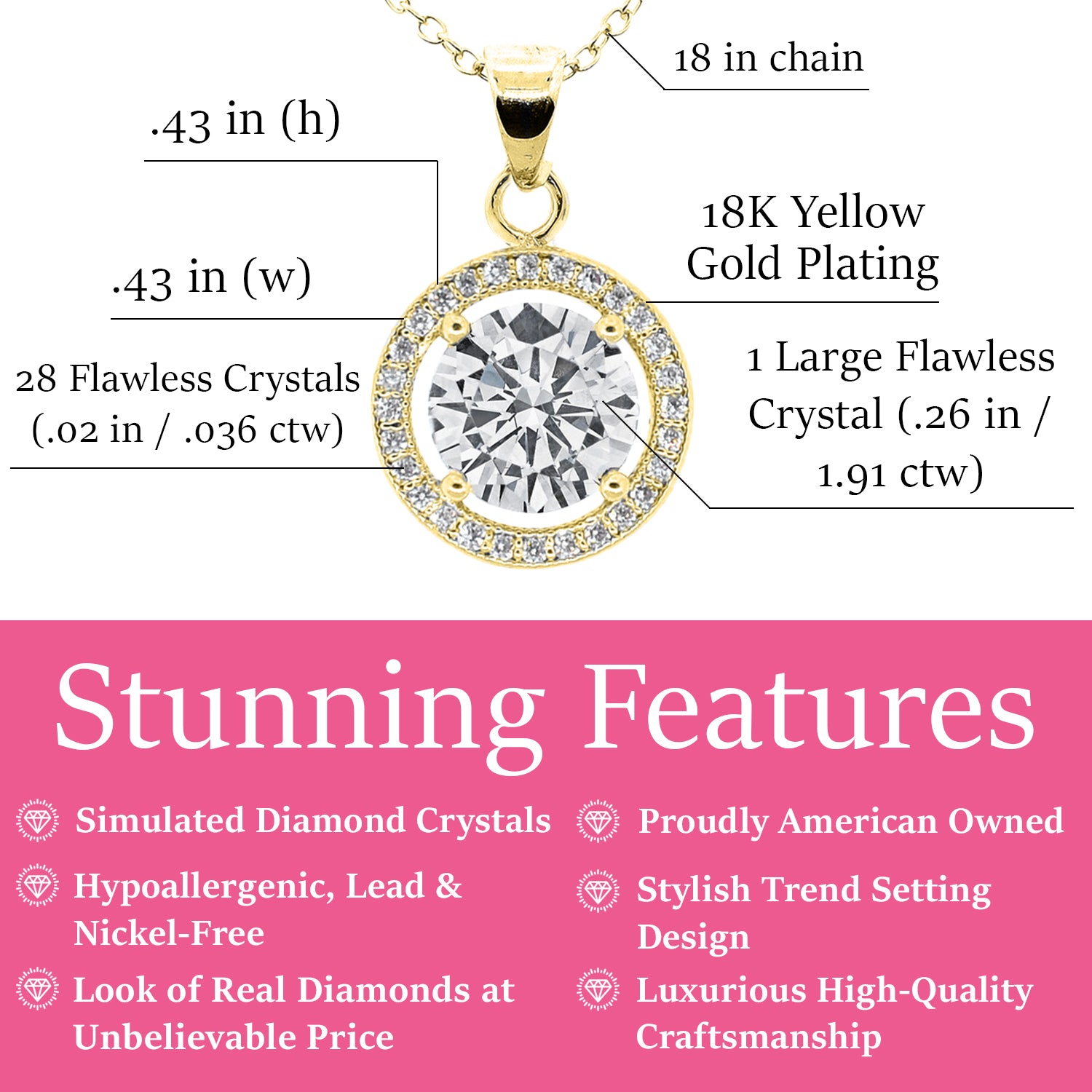 Walmart Cate & Chloe Blake 18k Yellow Gold Plated Halo Pendant Necklace with Simulated Crystals for Women
