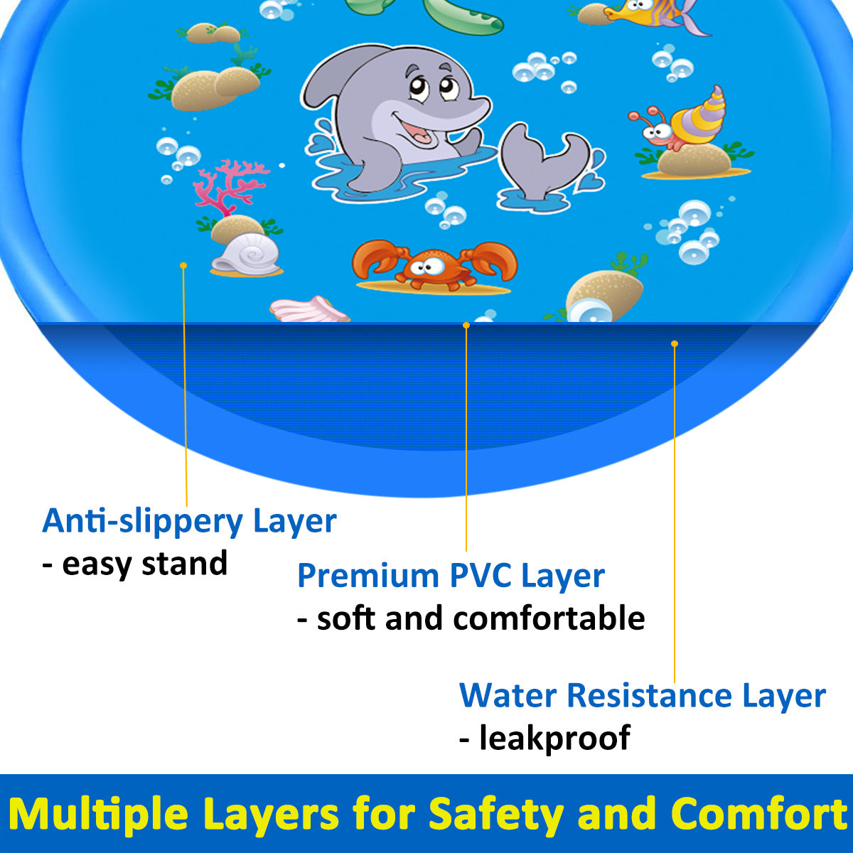 Walmart DUNCHATY 68" Splash Pad for Kids and Adults Outdoor Lawn Games Water Play Toy Mat, Blue