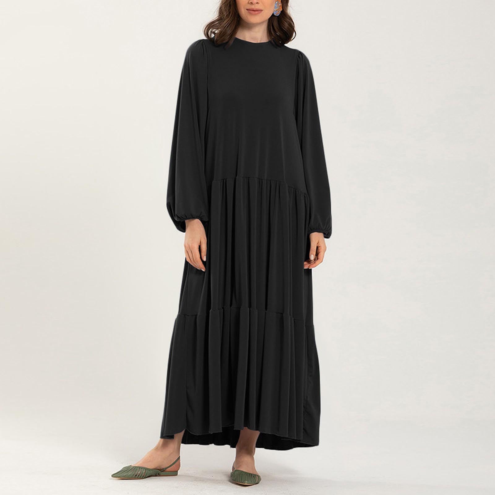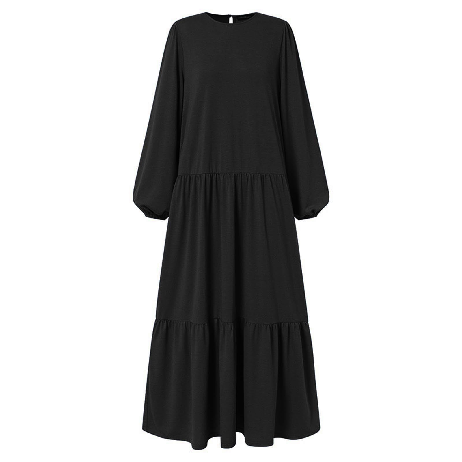 Walmart Ersazi Tshirt Dress Women's Plus Size Casual Dress High Collar Solid Color Long Sleeve Winter Fall Basic Casual Maxi Long Dress Daily Vacation Dress On Clearance Black Xxl