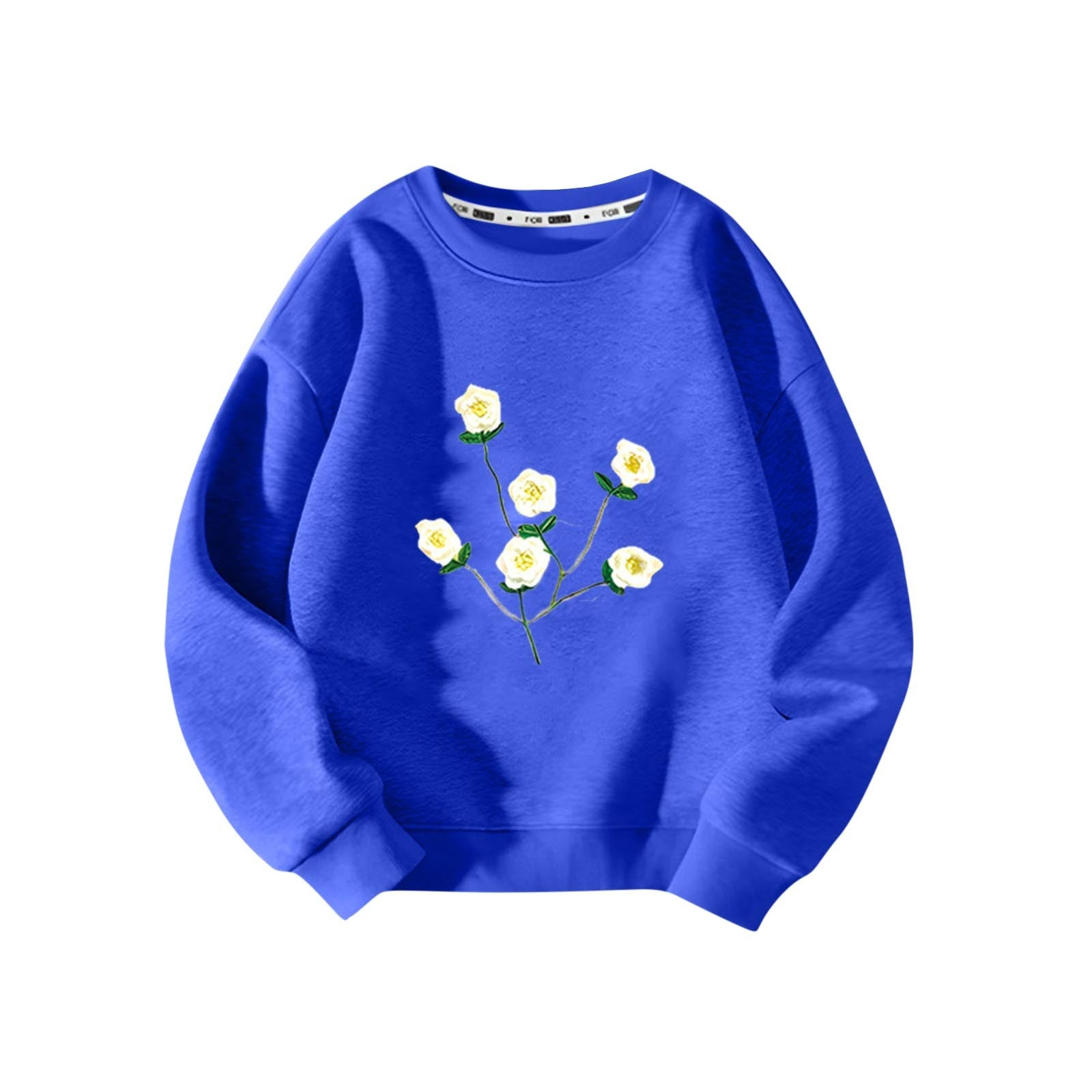 Walmart Girls Clothes Clearance Under 5, Sweatshirts for Girls 3 4 5 6 7 8 9 Years Old Warm Cotton Crew Neck Long Sleeve Floral Printed Pullover Tops (7-8T, Blue)