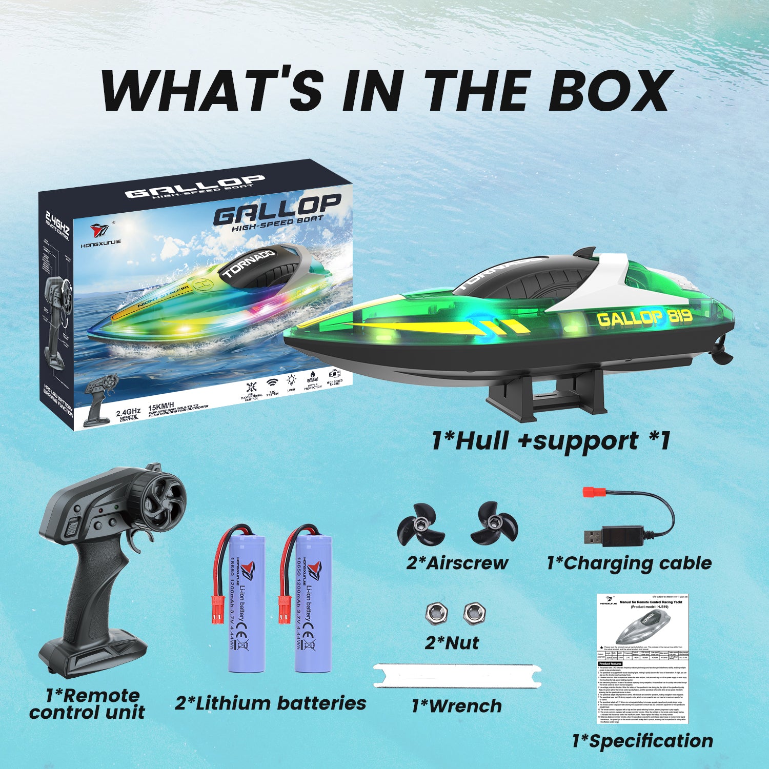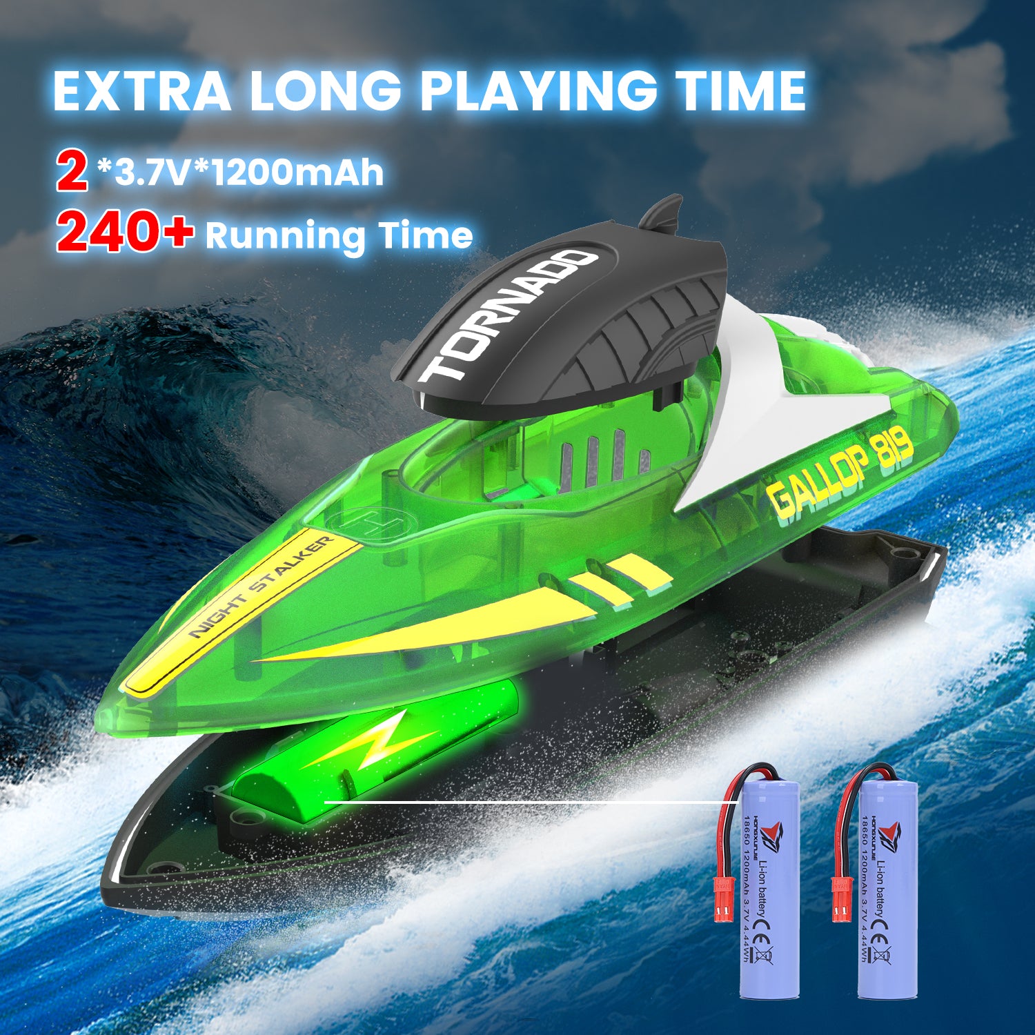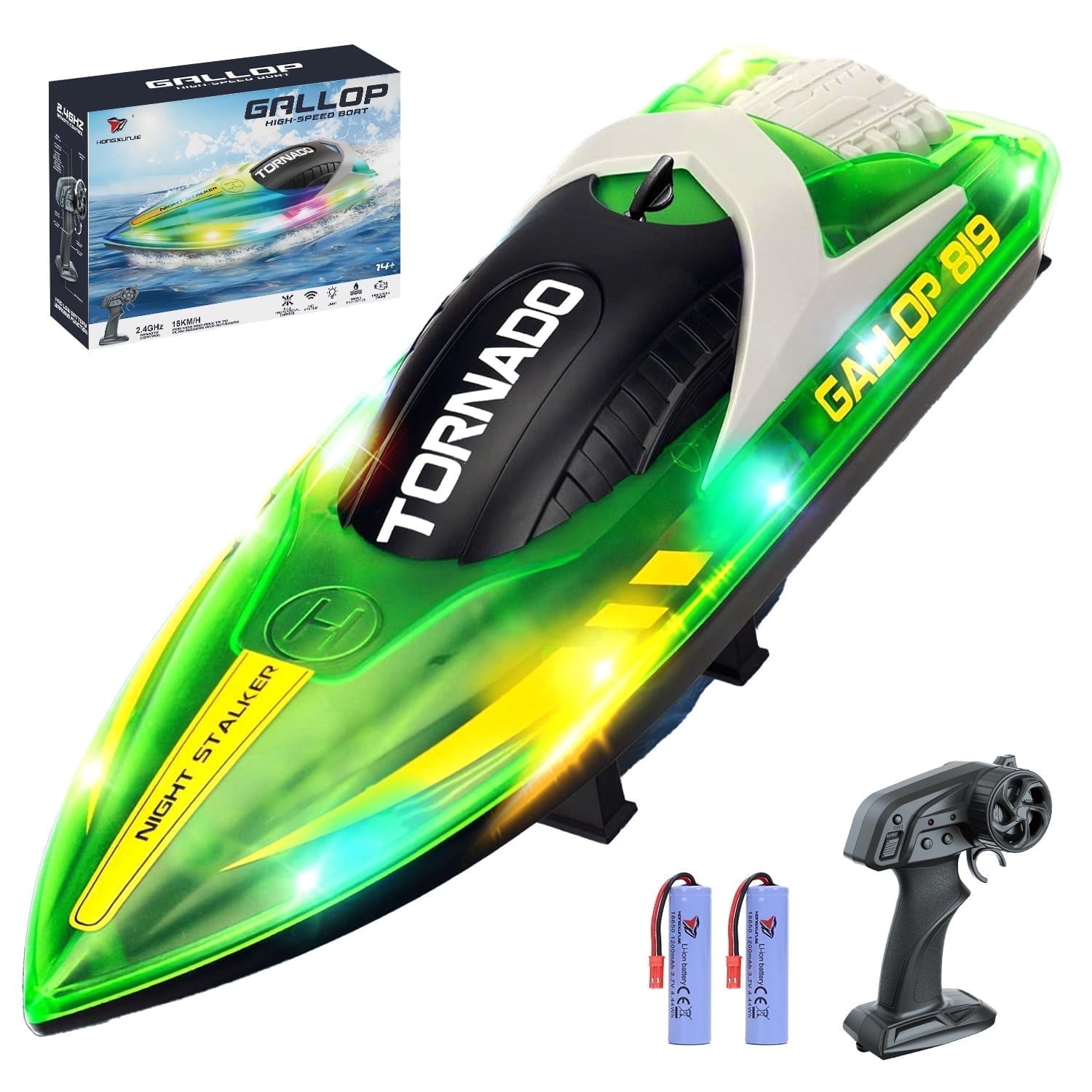 Walmart JoyStone RC Boat for Pools and Lakes, 2.4G 15+ MPH Fast Remote Control Boat with LED Lights, Racing Boats for Kids & Adults with 2 Rechargeable Battery, Gifts for Boys Girls (Green)