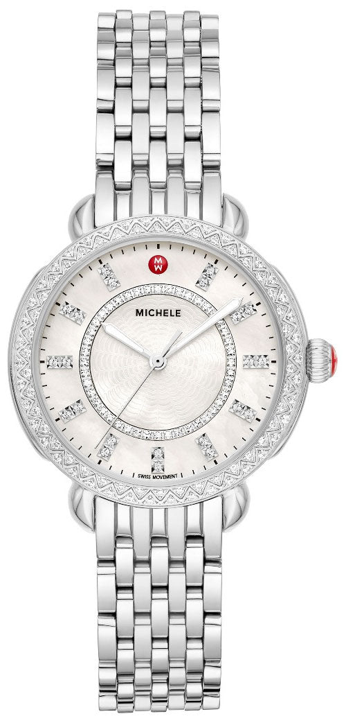Walmart Michele Sidney Classic Stainless Steel Mother-of-Pearl Dial Diamonds Womens Watch MWW30B000001