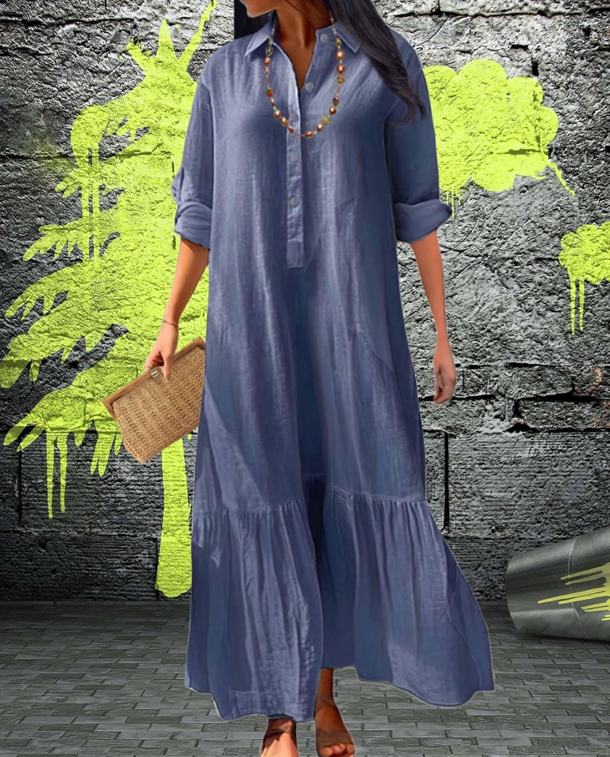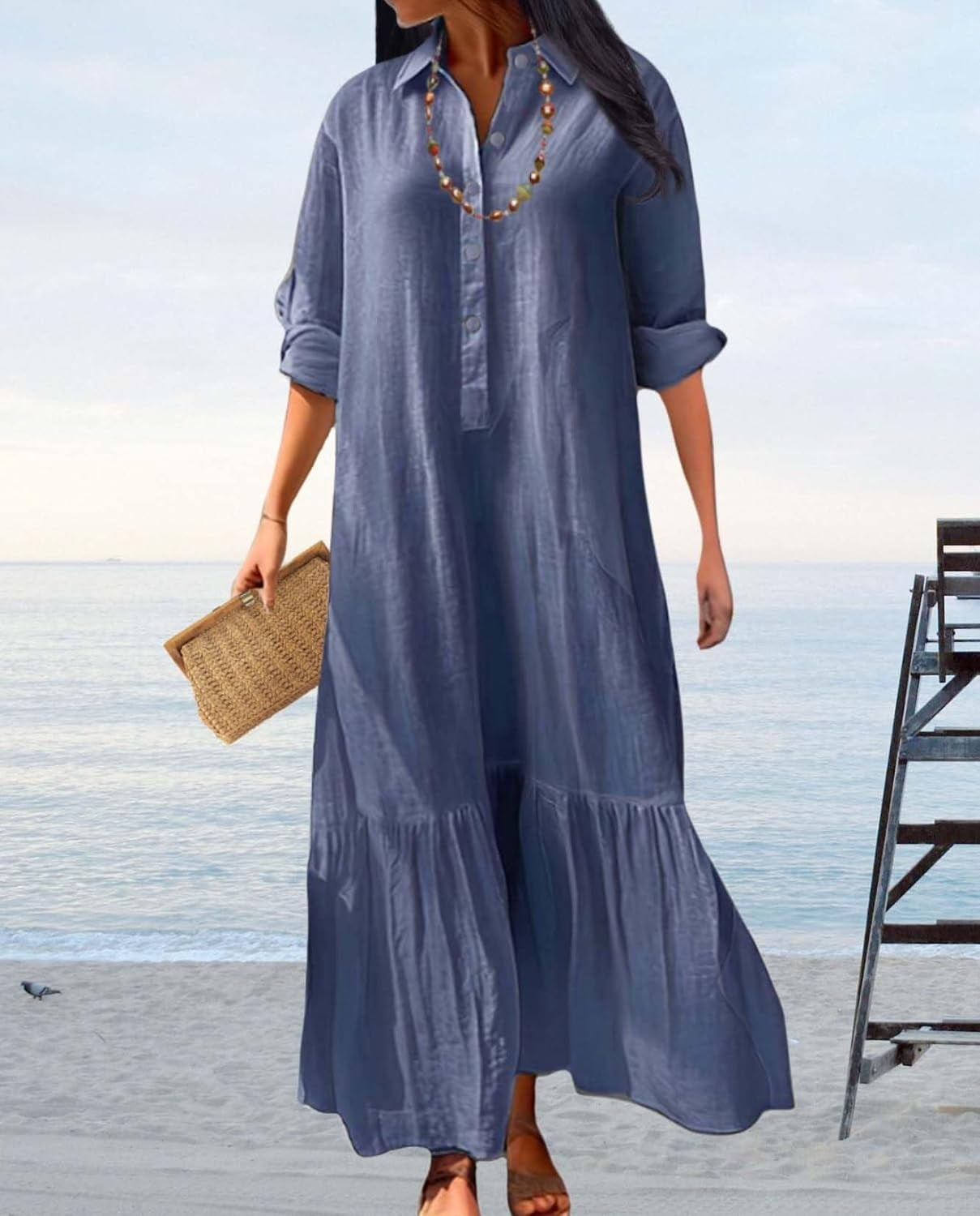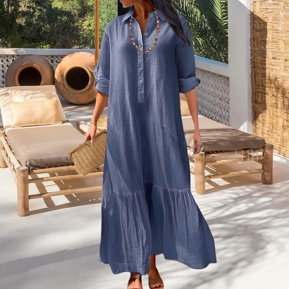 Walmart Womens Cotton Linen Dress Casual Button Down Long Sleeve Flowy Plus Size Lapel Collared Maxi Dresses Shirt Dress